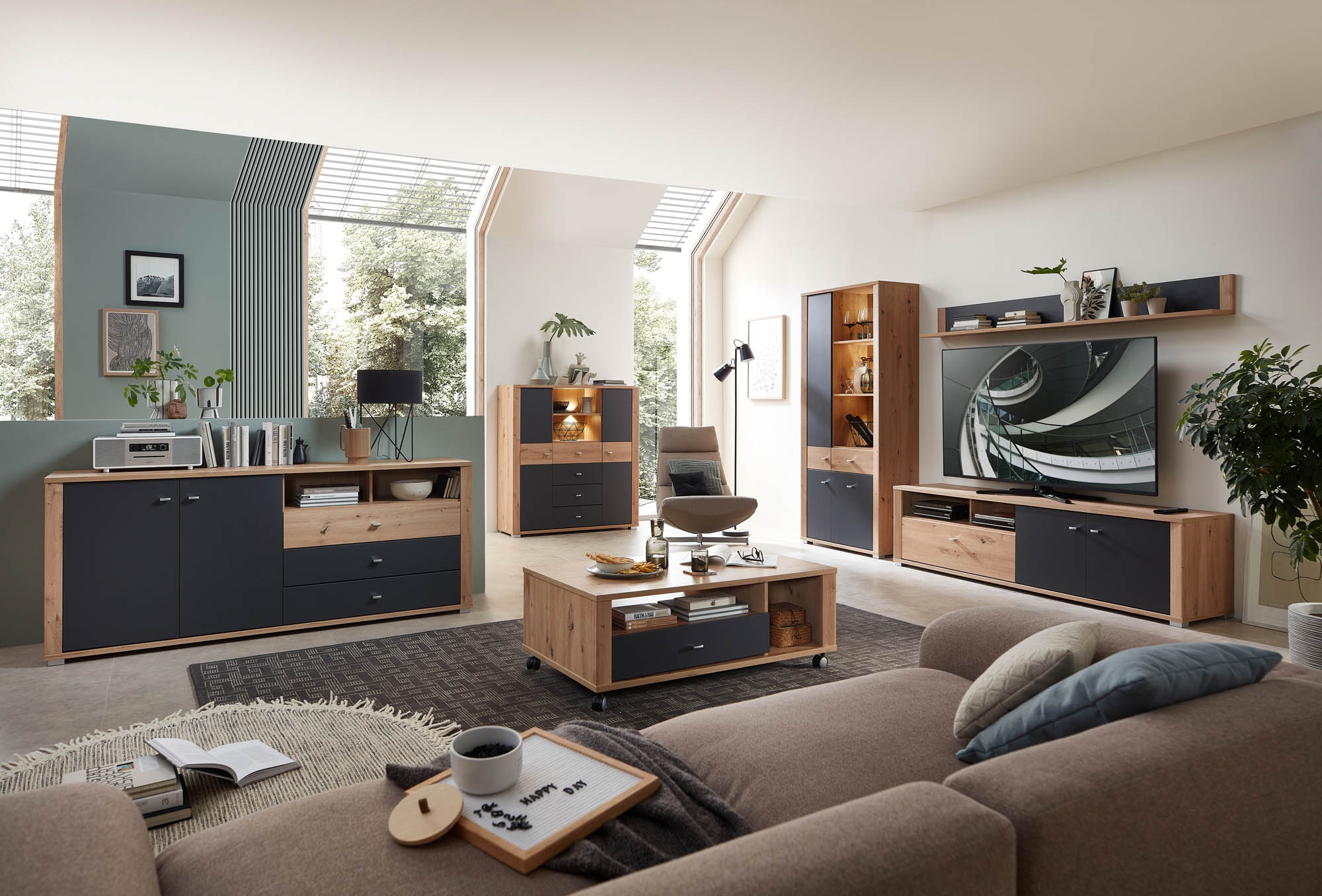 décor chêne Artisan et contrastes en mélaminé ton gris