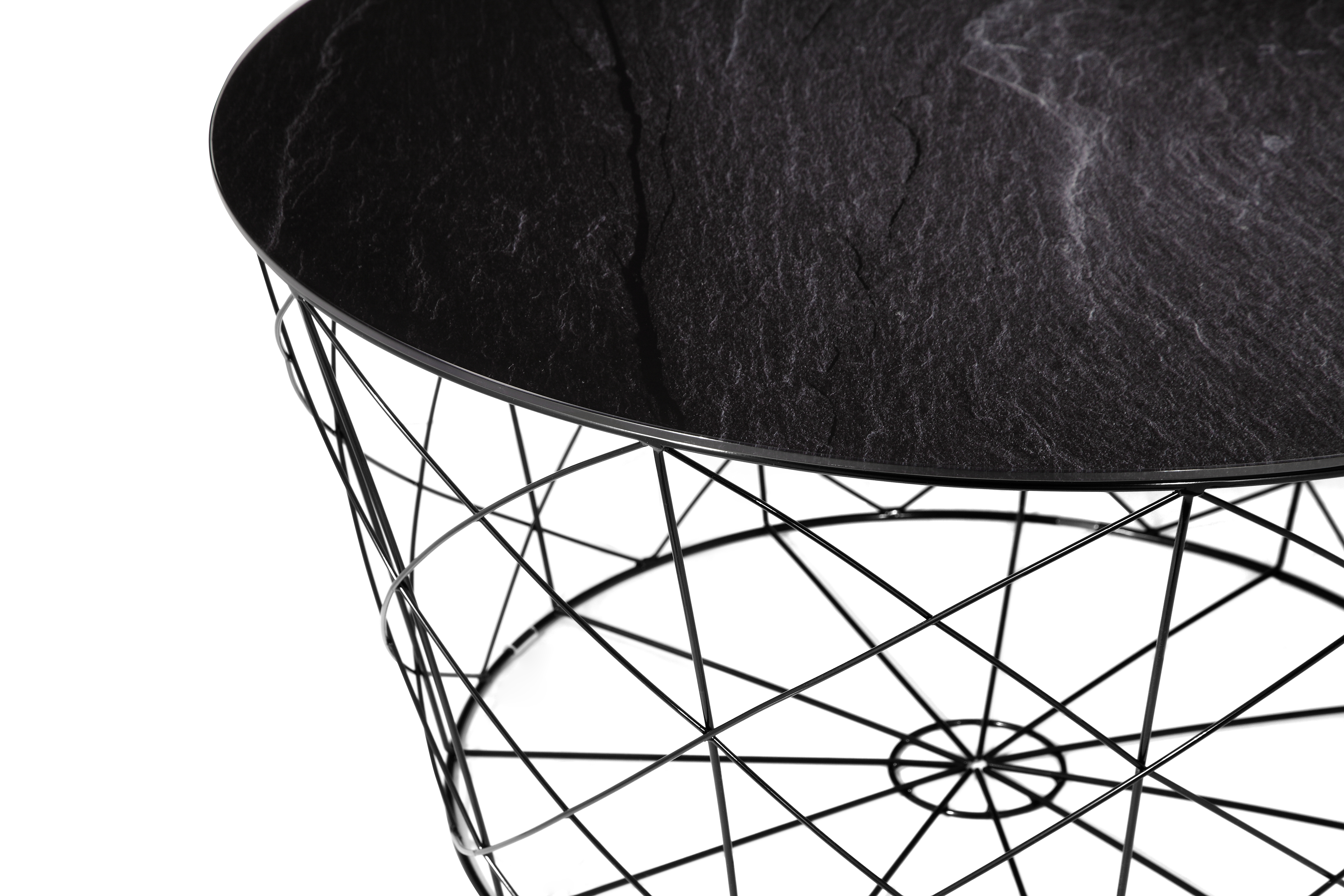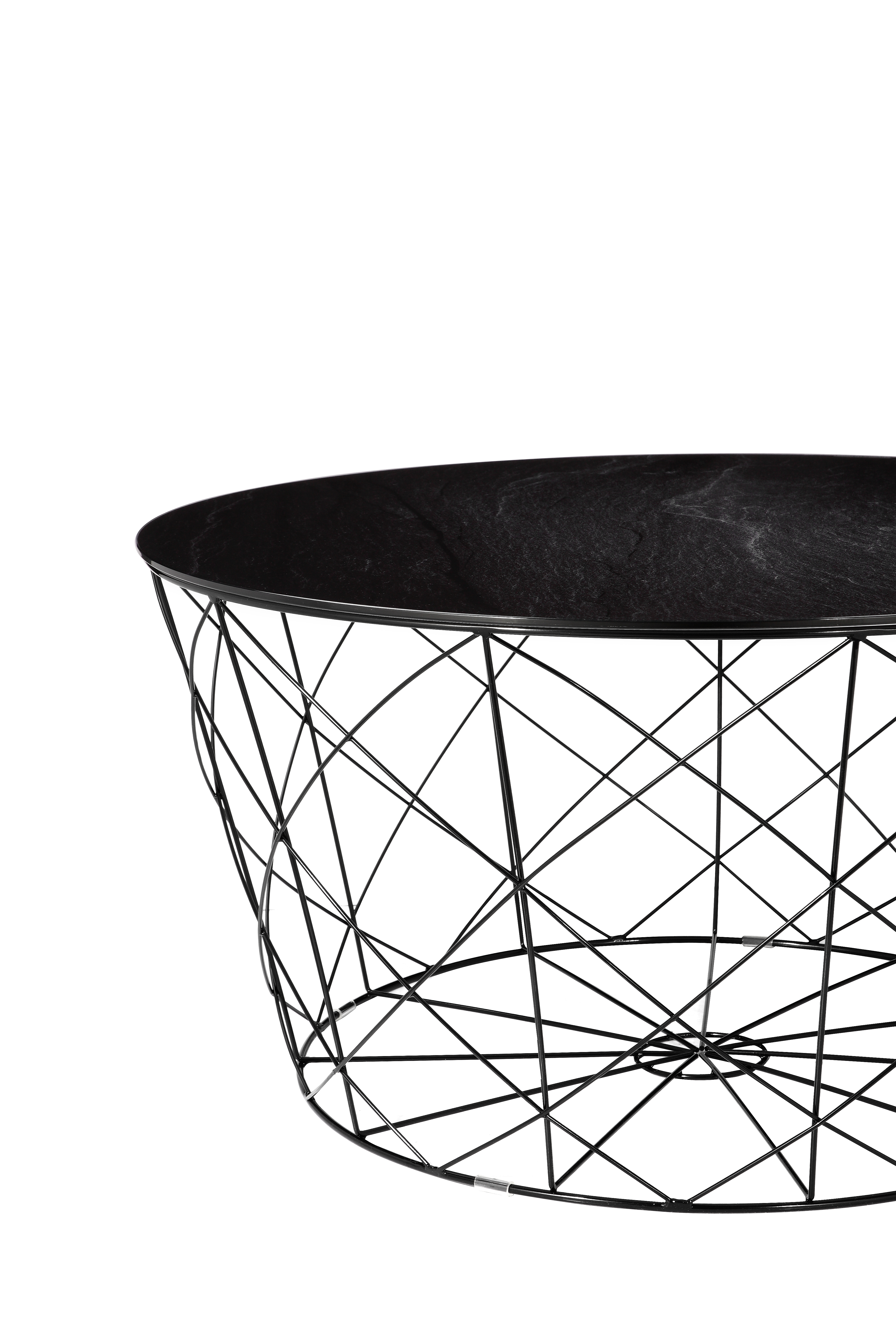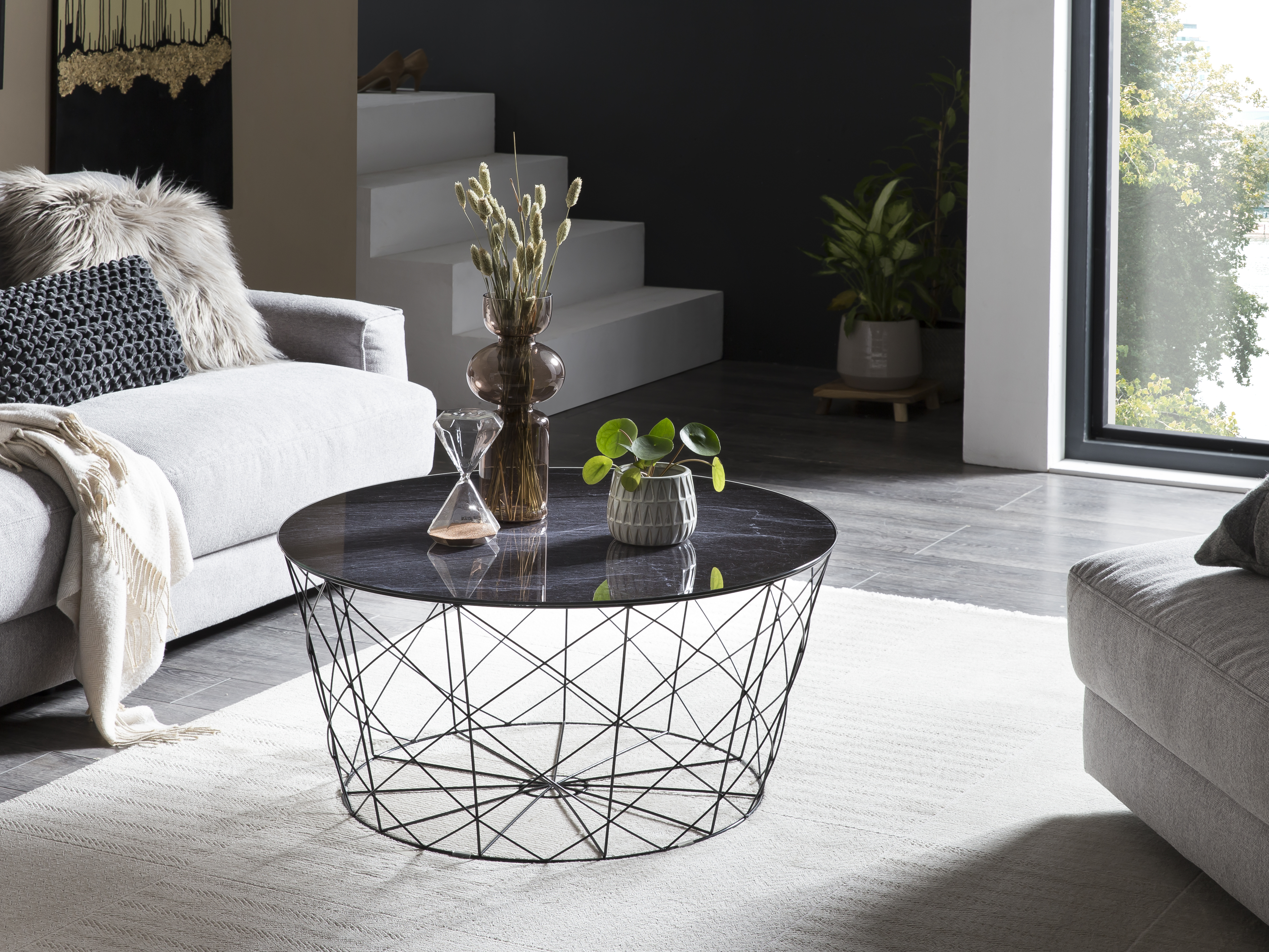Cette table basse ronde combine un design moderne avec une touche d’extravagance. Le plateau en verre recouvert d'un film aspect marbre par le dessous se marie parfaitement avec le piètement en métal ton noir. La table basse offre suffisamment d’espace de rangement pour des fruits, des snacks ou un vase de fleurs par exemple. La structure peut servir de panier de rangement pour les magazines. Grâce à son design attrayant, cette table basse peut être combinée avec de nombreux meubles et trouvera également sa place dans votre intérieur.