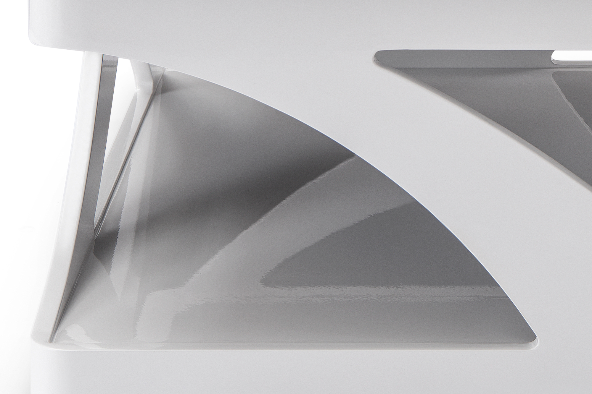 Piètement : MDF (panneau de fibres de bois de densité moyenne) ton blanc ultra brillant