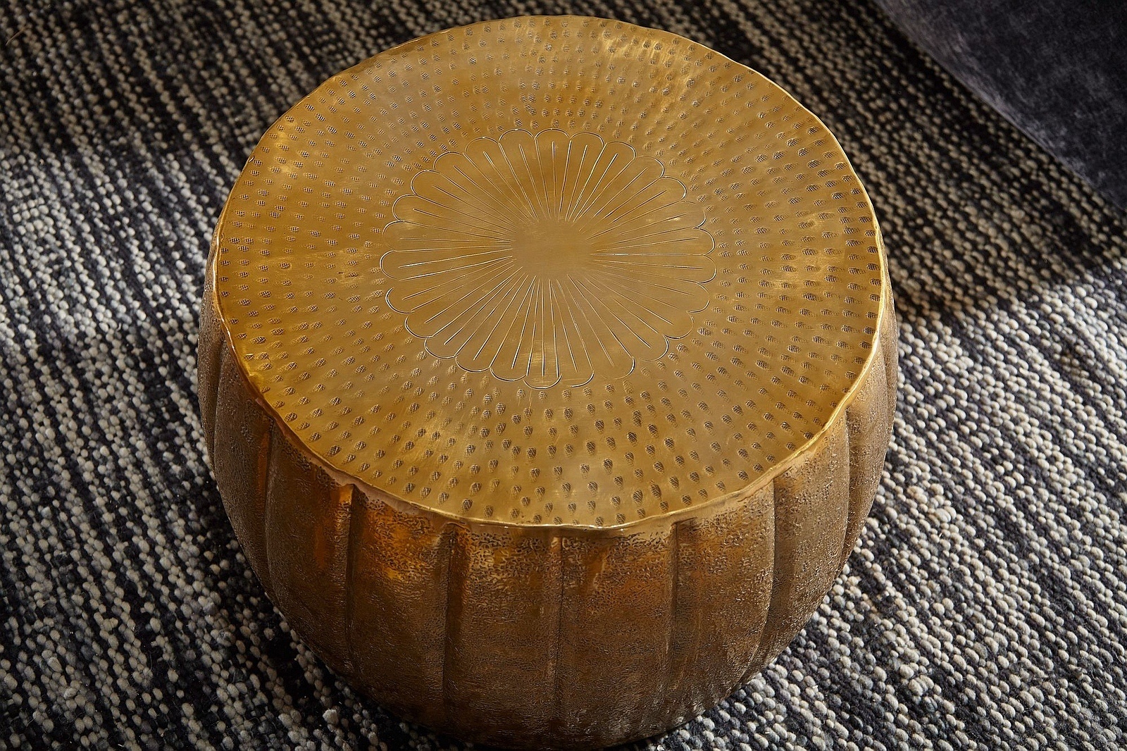 - GLAMOUR ✔ Ses superbes structures, sa couleur brillante et son motif ciselé sur le plateau feront de cette table orientale en métal un atout indéniable dans votre maison. La table, fabriquée à la main avec le plus grand soin, offre non seulement un joli design mais aussi une surface de rangement pour la télécommande, les magazines, etc... Une touche des 1001 nuits dans votre maison !