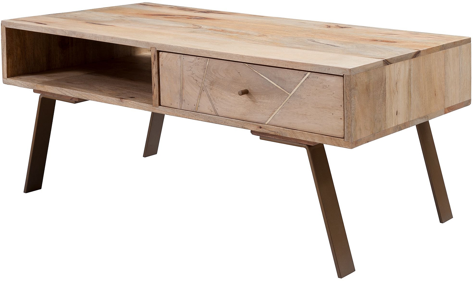 - NOTE RUSTIQUE ✔ Faites entrer la nature dans votre chambre à coucher ! Cette table de salon en bois de manguier dans un style campagne rustique exhale un charme particulier qui investira votre intérieur. De fines bandes métalliques décorent les façades du tiroir et s'harmonisent avec le veinage naturel du bois. La table en bois massif est portée par quatre pieds résistants en fer. Profitez de votre programme TV avec snacks et boissons à portée de main !