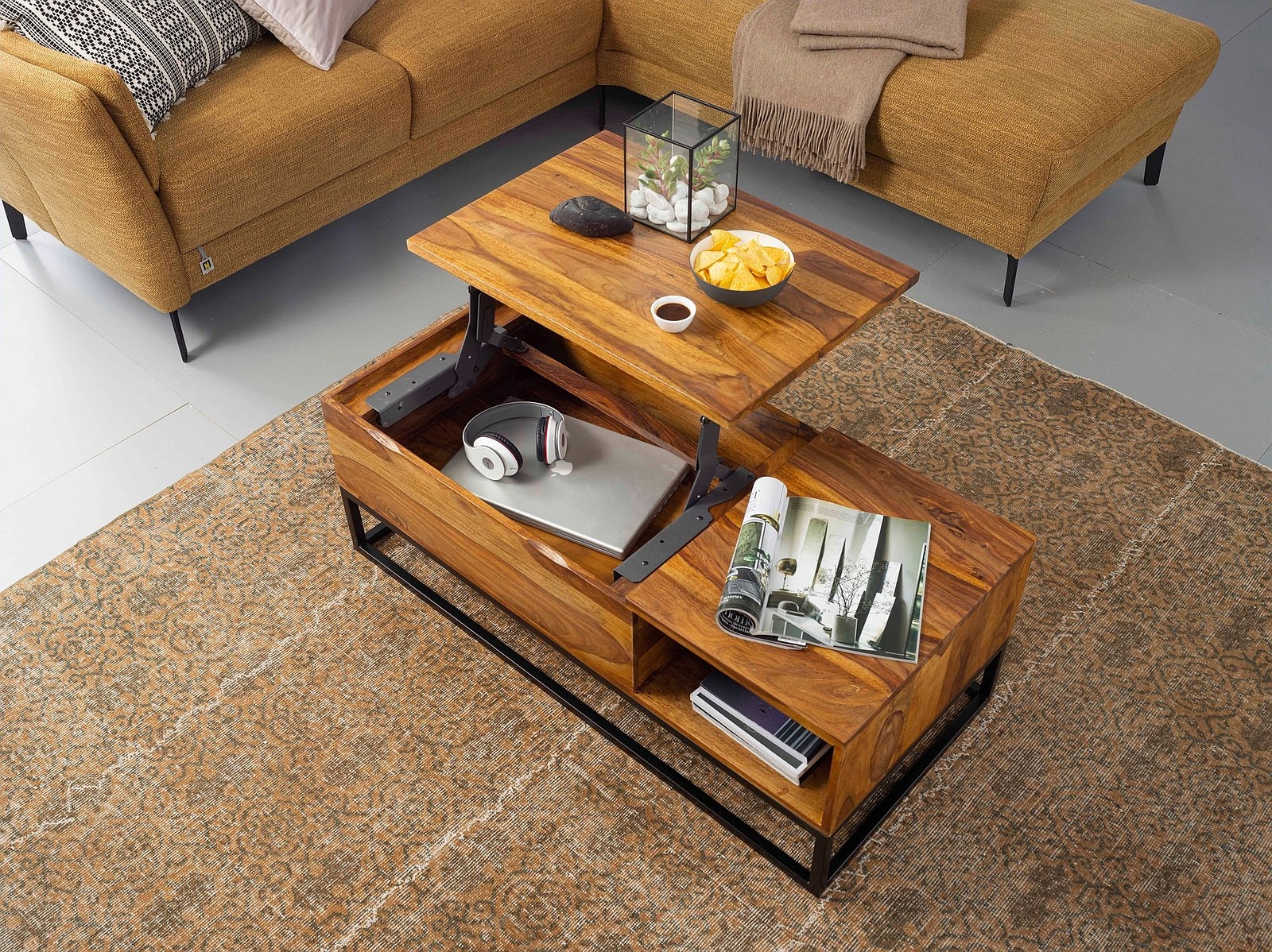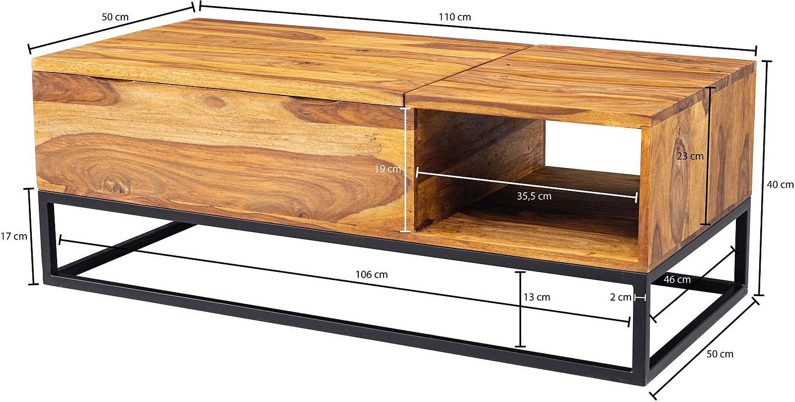 - Plateau de table : bois de sheesham massif avec couche de vernis protecteur