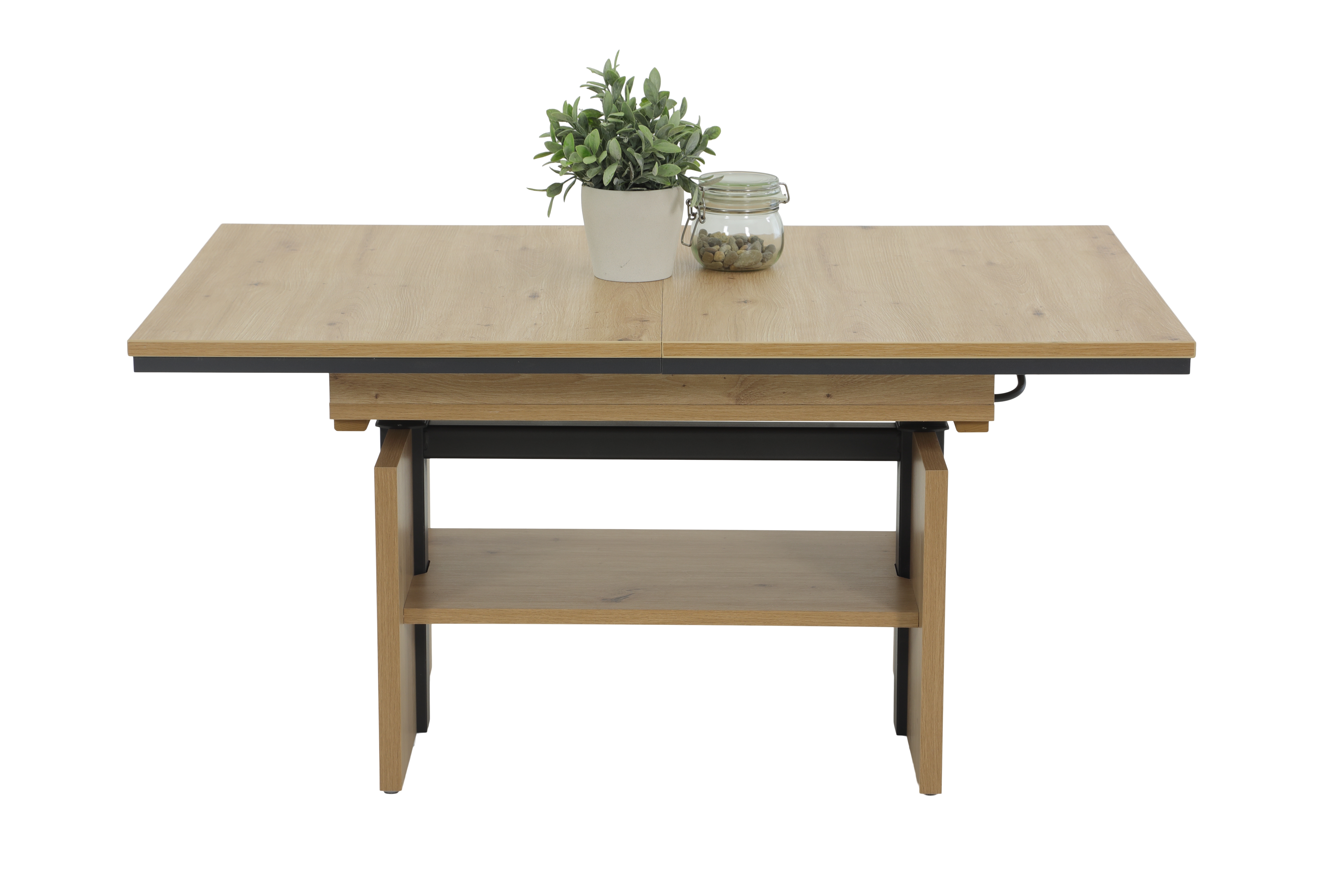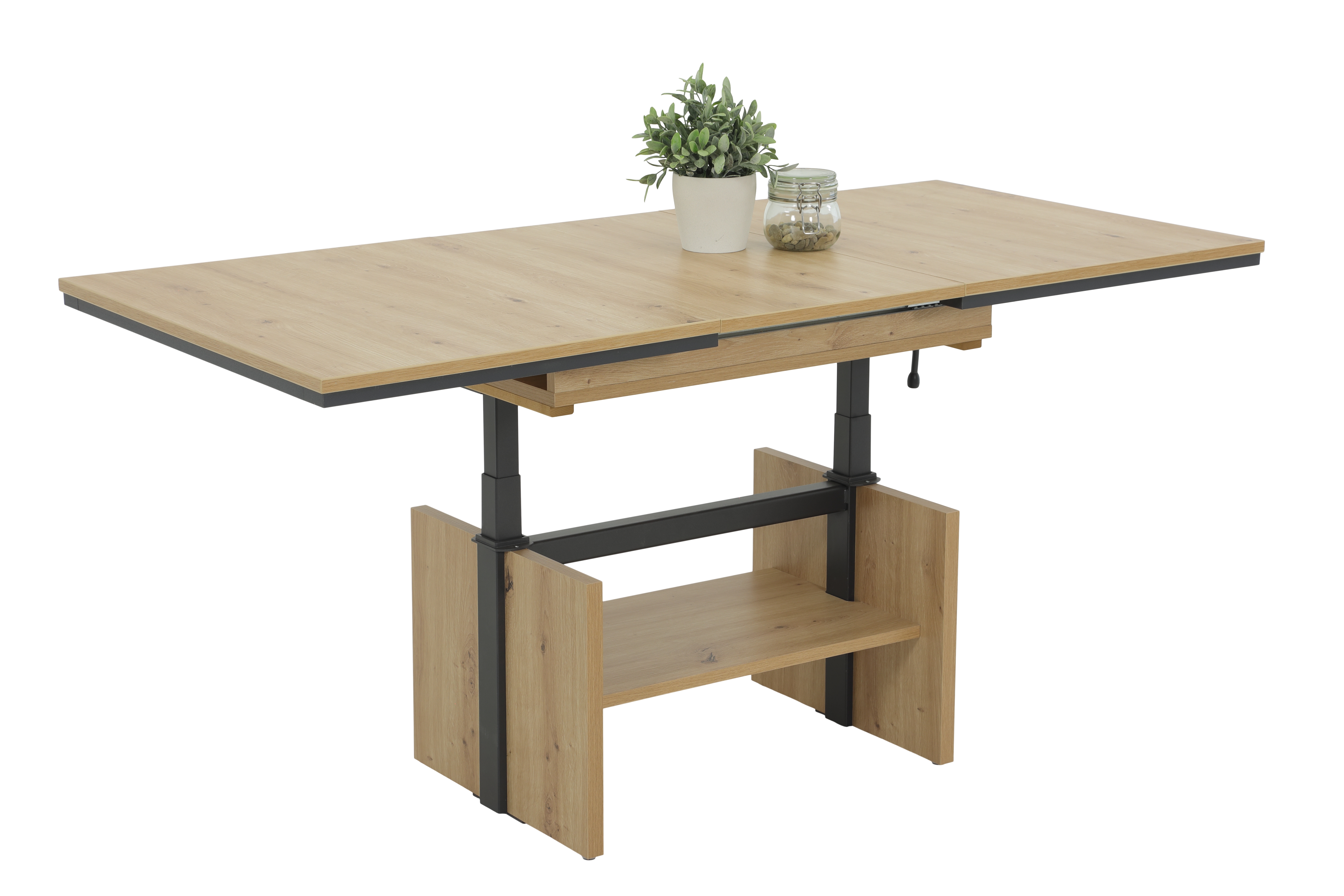 Plateau de table, piètement et tablette : décor chêne Artisan, panneau de particules surfacé mélaminé (PPSM)