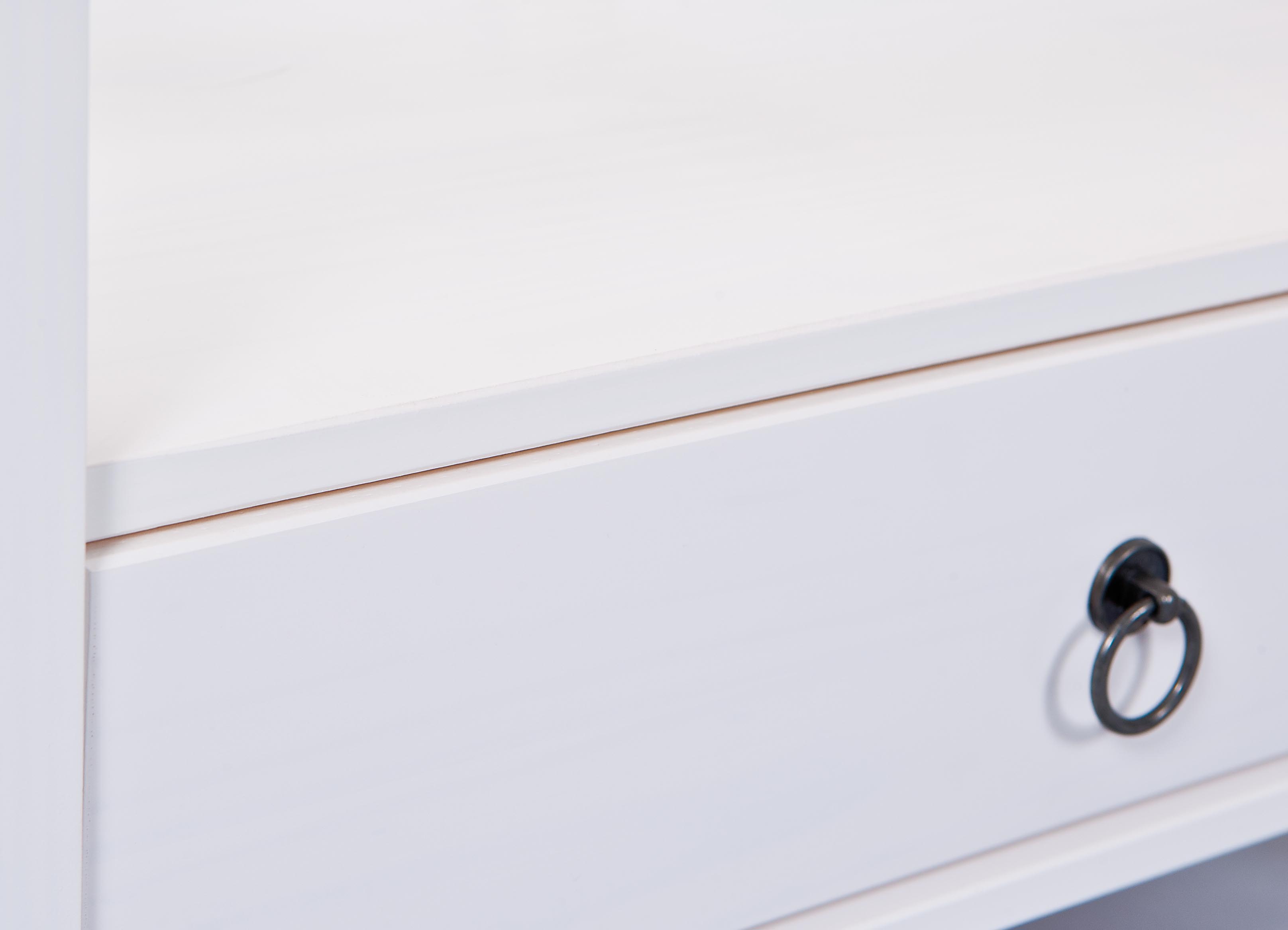 Le tiroir est monté sur des rails métalliques ce qui garantit une utilisation fluide et confortable. La poignée en métal constitue un gage de qualité supplémentaire. Les pieds fuselés apportent du charme au meuble et complètent son design élégant.