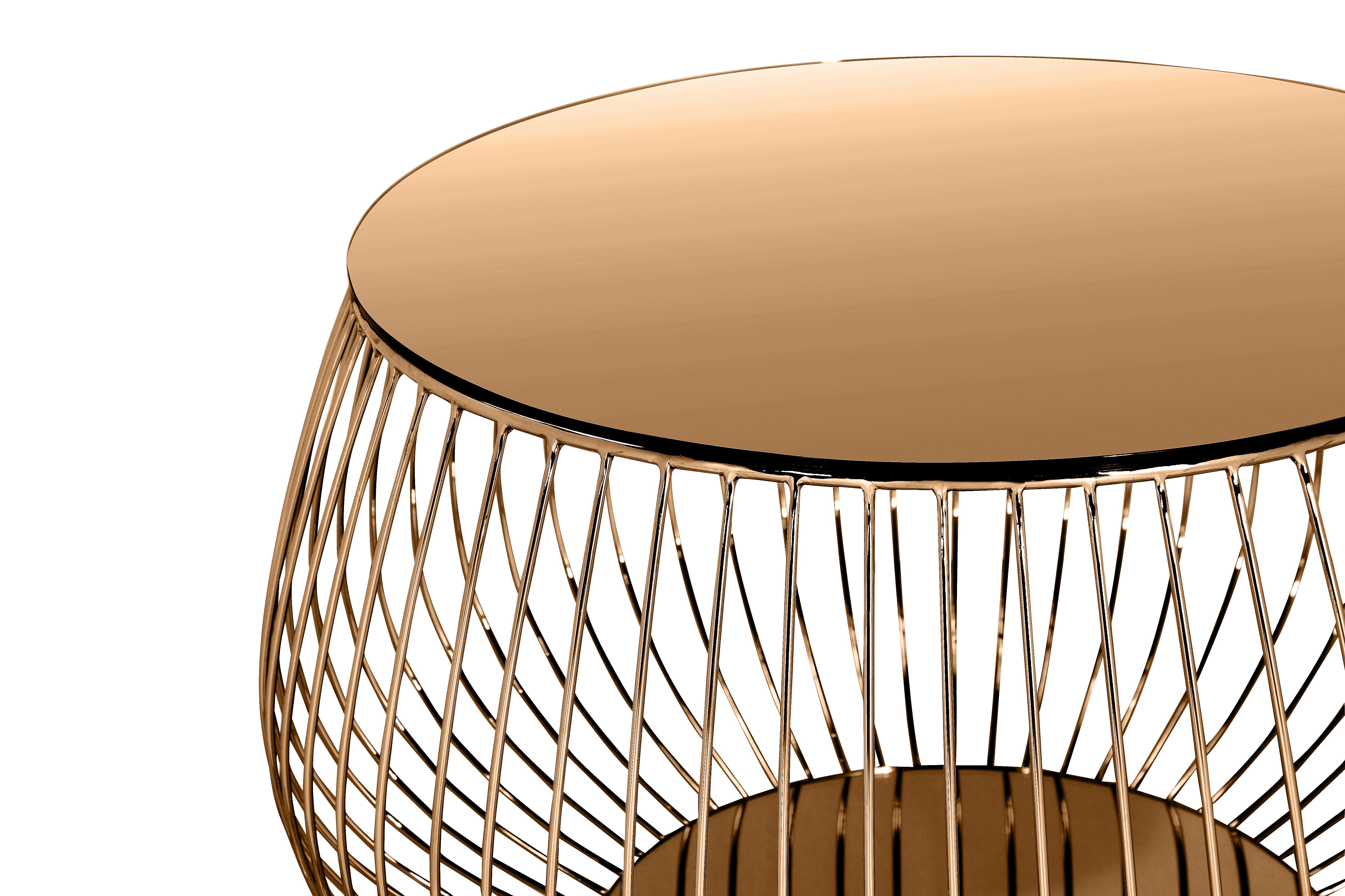 Piètement : filaire en métal doré rose