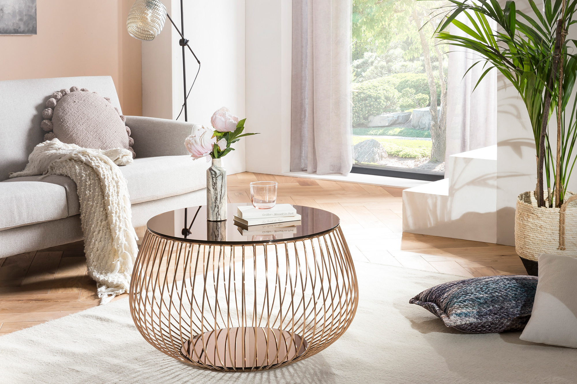 Cette table basse ronde combine un design moderne avec une touche d’extravagance. Le plateau ton doré rose se marie parfaitement avec le piètement en métal. La table basse offre suffisamment d’espace de rangement pour des fruits, des snacks ou un vase de fleurs par exemple. Grâce à son design attrayant et à sa forme ronde, cette table basse peut être combinée avec de nombreux meubles et trouvera également sa place dans votre intérieur. La surface de la table de salon est très facile d'entretien et robuste. Les petites saletés peuvent facilement être nettoyées avec un chiffon légèrement mouillé.