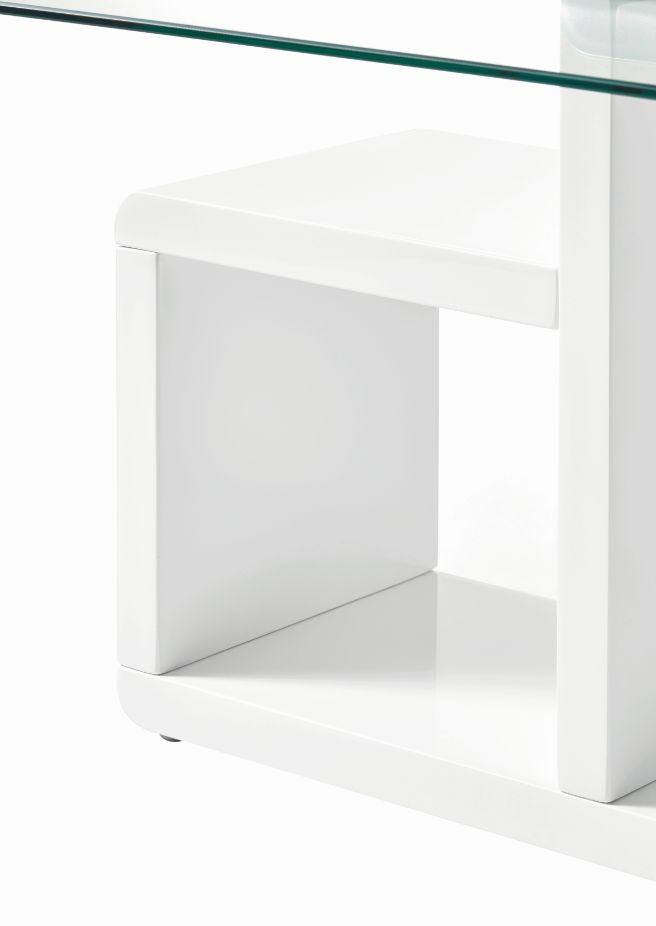 Piètement et casiers : MDF (panneau de fibres de bois de densité moyenne), laqué ton blanc ultra brillant