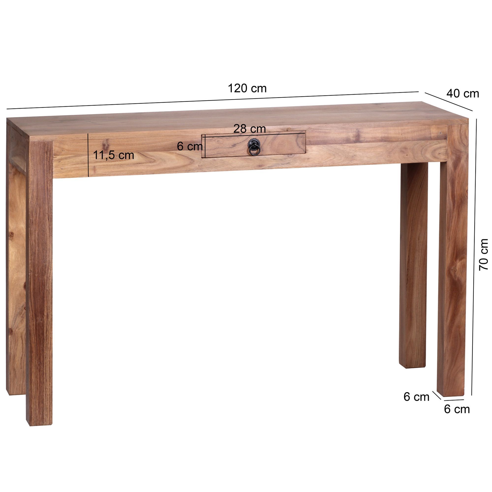 - Table avec un plateau et un tiroir en bois d'acacia - Utilisation polyvalente dans le salon et la salle à manger