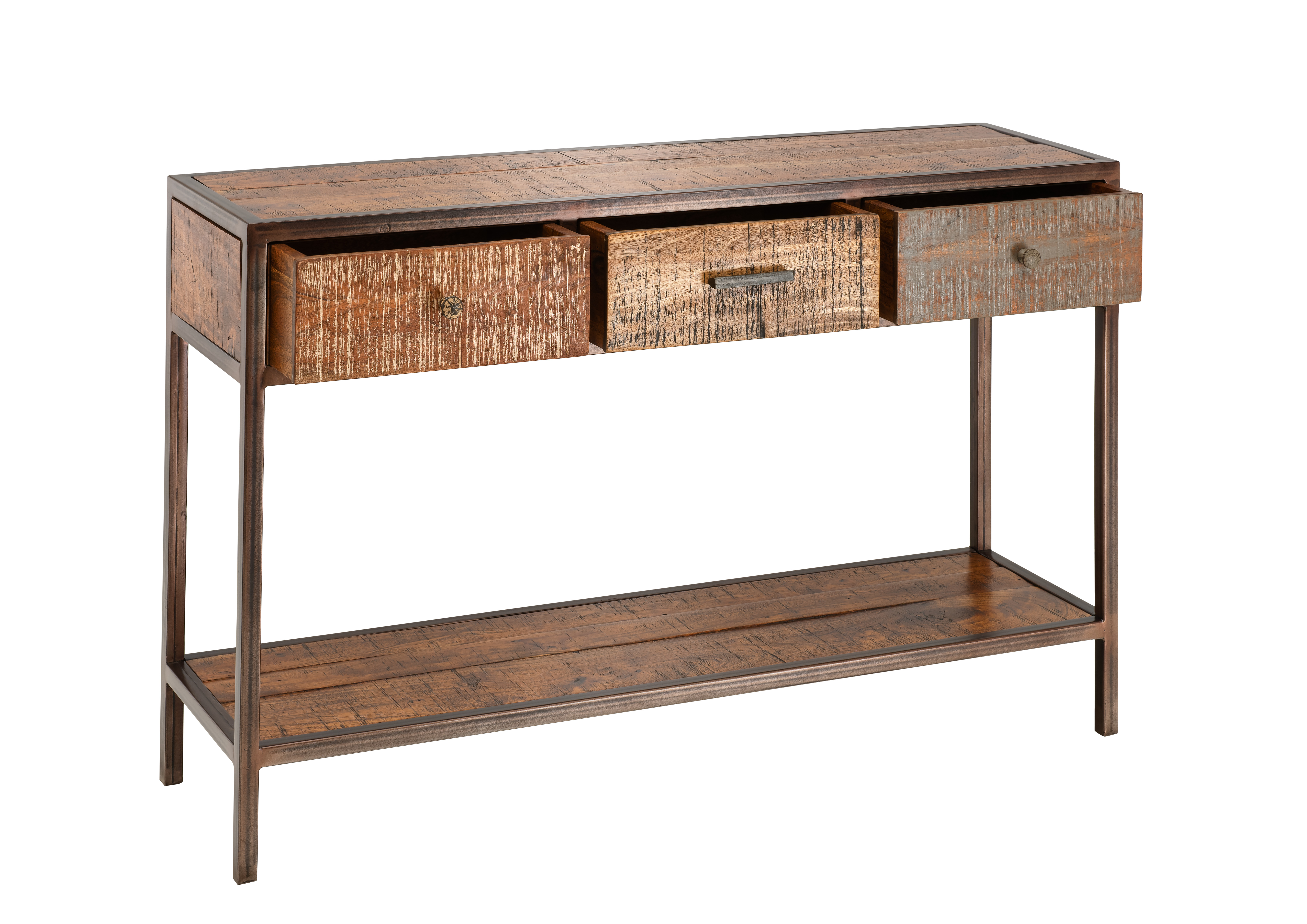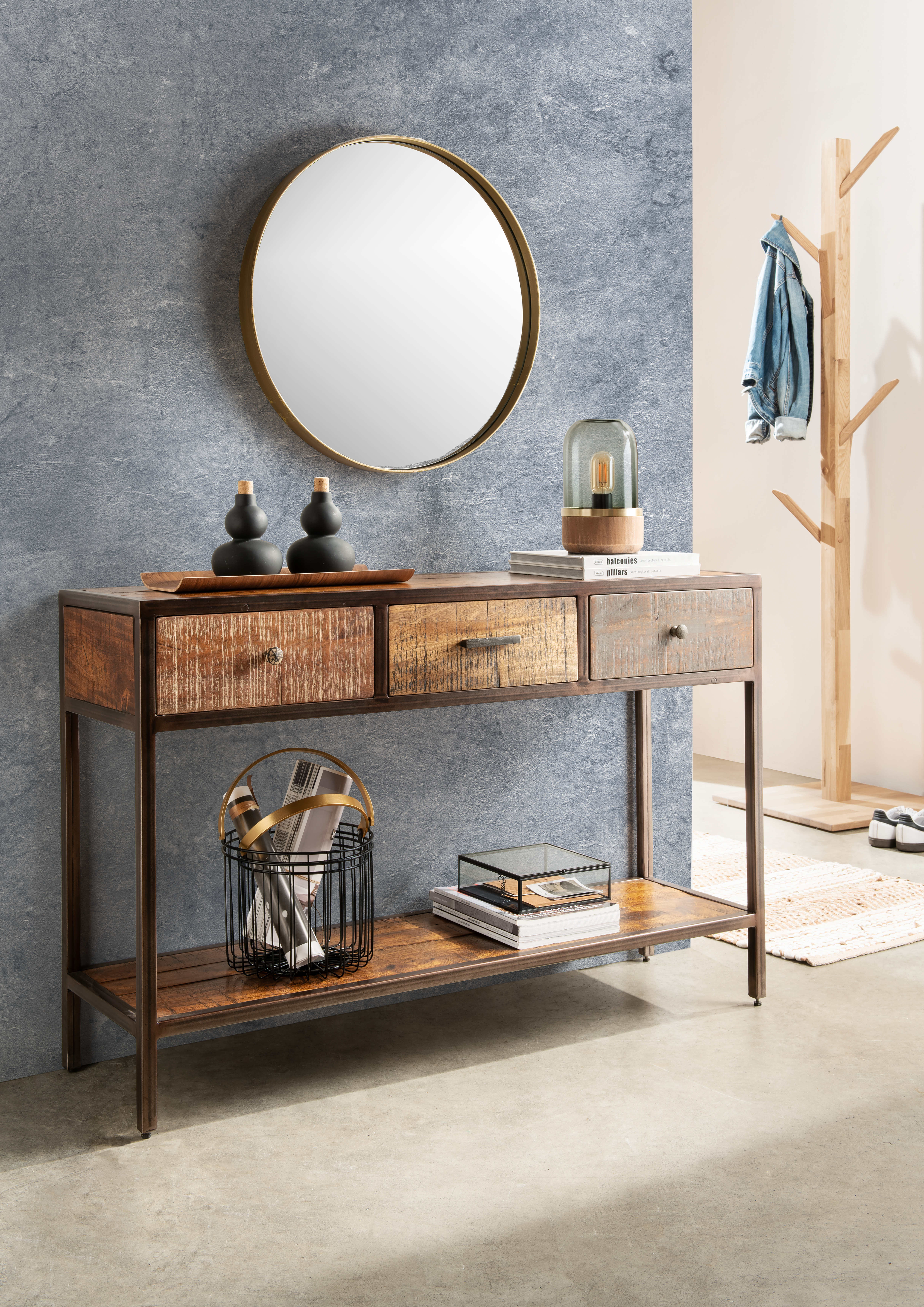 Vieux bois massif recyclé (Inde) avec cadre en métal (finition vintage)