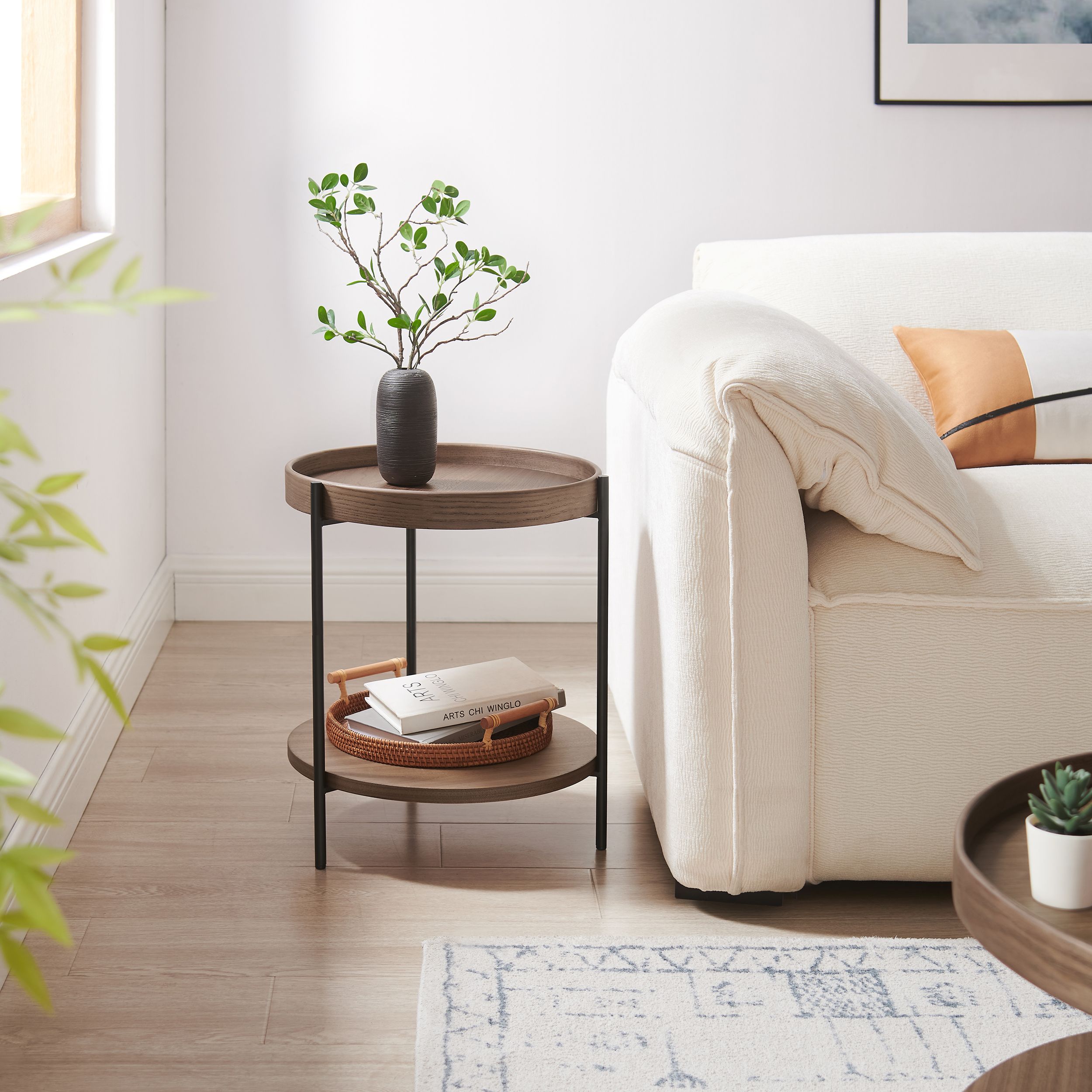 Plateau de table et tablette : MDF (panneau de fibres à densité moyenne) avec placage frêne laqué ton noyer