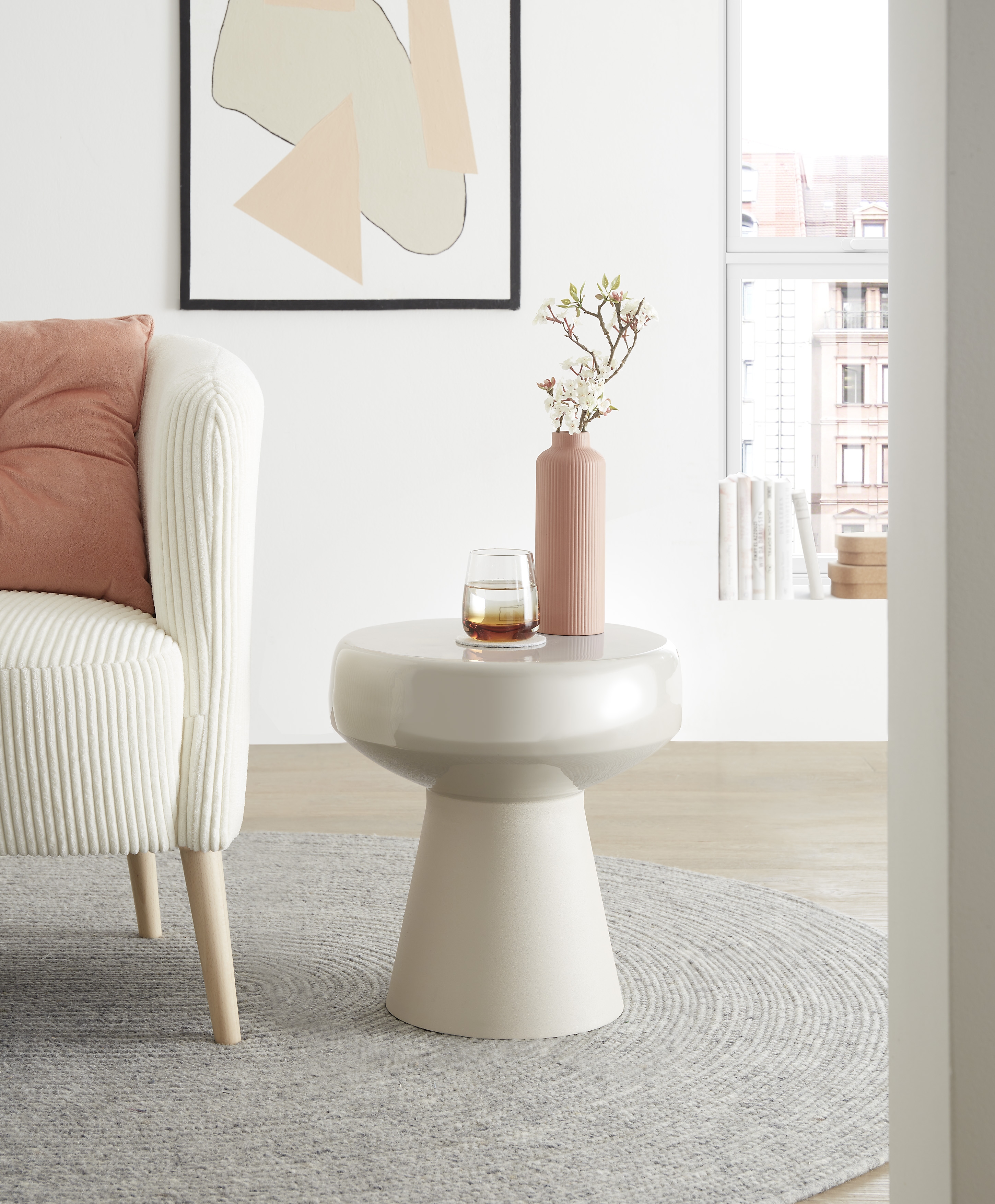 Piètement : fer finition époxy ton crème