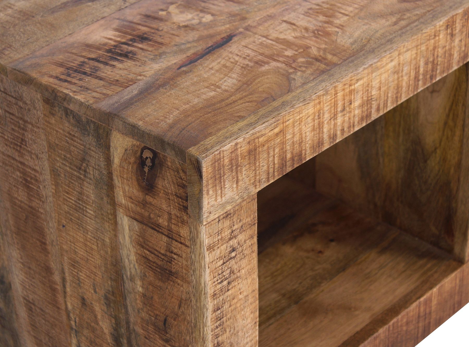 Cette table basse en bois de manguier de qualité séduit par son design aux lignes droites. La table d'appoint avec son casier ouvert offre un bel espace de rangement pour les livres, magazines ou la télécommande. Sur la table, vous pourrez placer des fleurs, de la déco ou quelques bougies. Cette table de salon sera également bien mise en valeur dans votre intérieur.