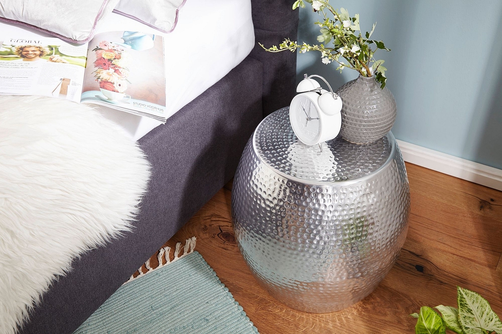 - BRILLANT ✔ Son beau design martelé, ses formes galbées et sa couleur brillante font de cette table orientale en métal un atout indéniable dans votre maison. Le bout de canapé, fabriqué à la main avec le plus grand soin, offre non seulement un design mais aussi une surface de rangement ronde pour divers accessoires. Une touche des 1001 nuits dans votre maison !