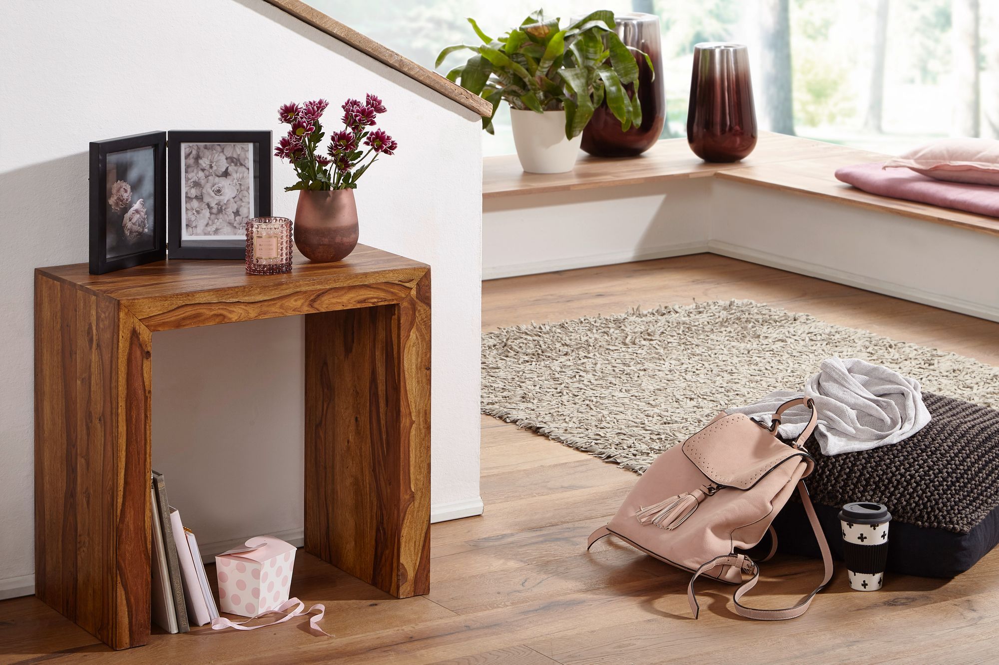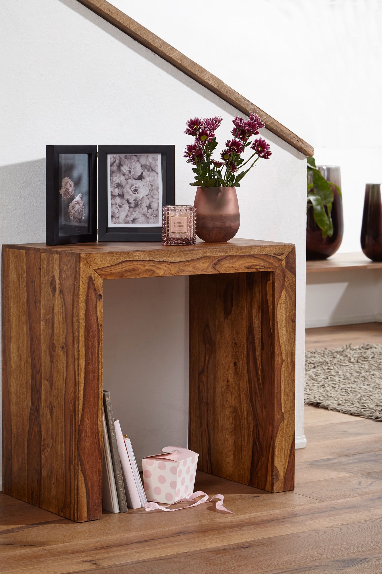 - Jolie table d'appoint en bois de sheesham massif avec un veinage unique - Panneaux latéraux stables