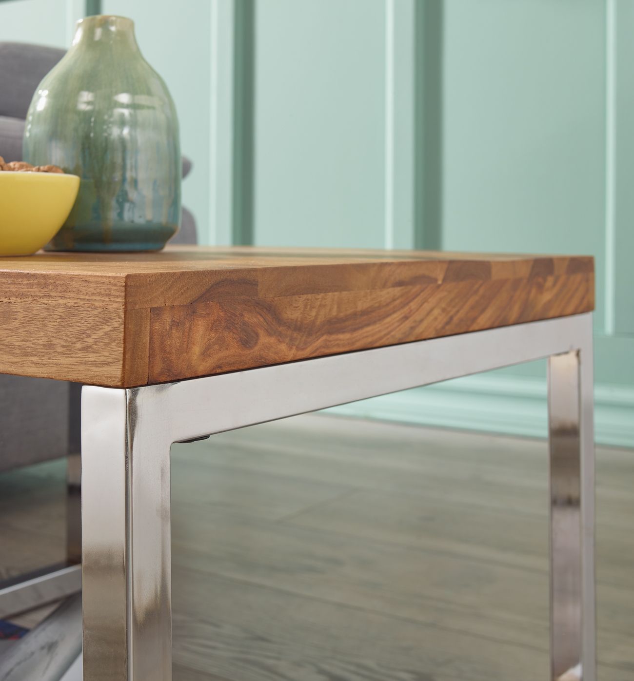 Pour quel type d'utilisation ? La table d'appoint avec une largeur et une profondeur de 60 cm peut être positionnée de façon individuelle - Piètement métallique chromé pour un bel effet visuel
