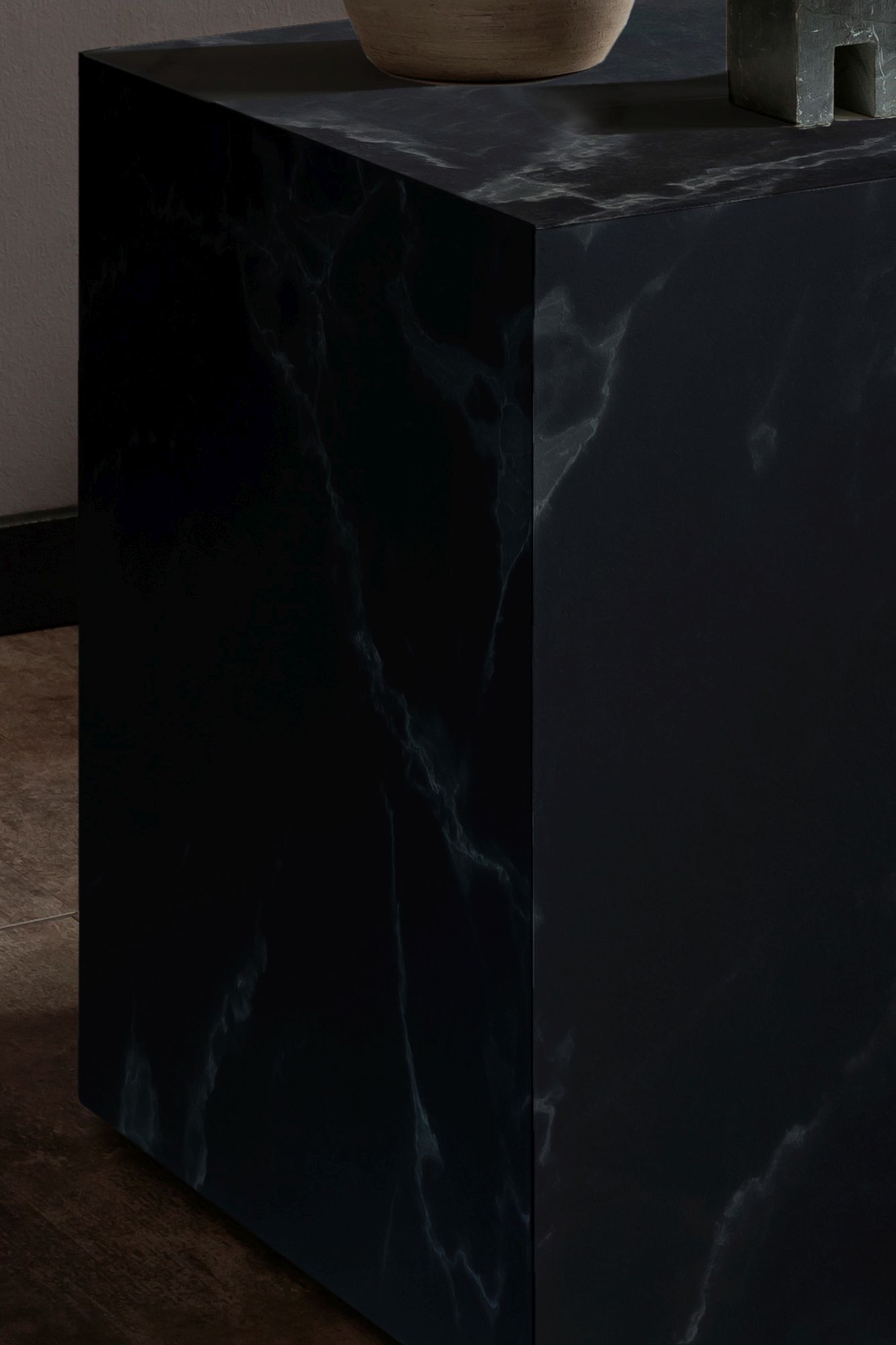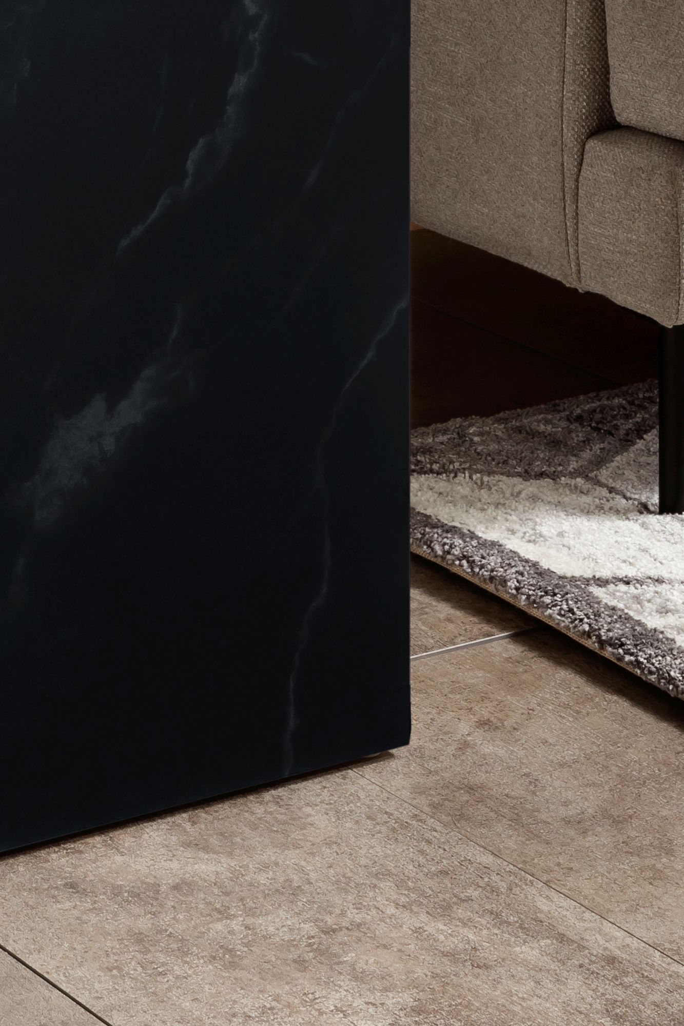 Cette table d'appoint chic confèrera instantanément un aspect élégant à votre salon. La forme simple en cube avec une grande surface de rangement met particulièrement en valeur le superbe aspect marbré ton noir. La table d'appoint peut être utilisée de différentes manières : à côté du canapé, comme table de chevet ou comme décoration à poser librement dans la pièce.