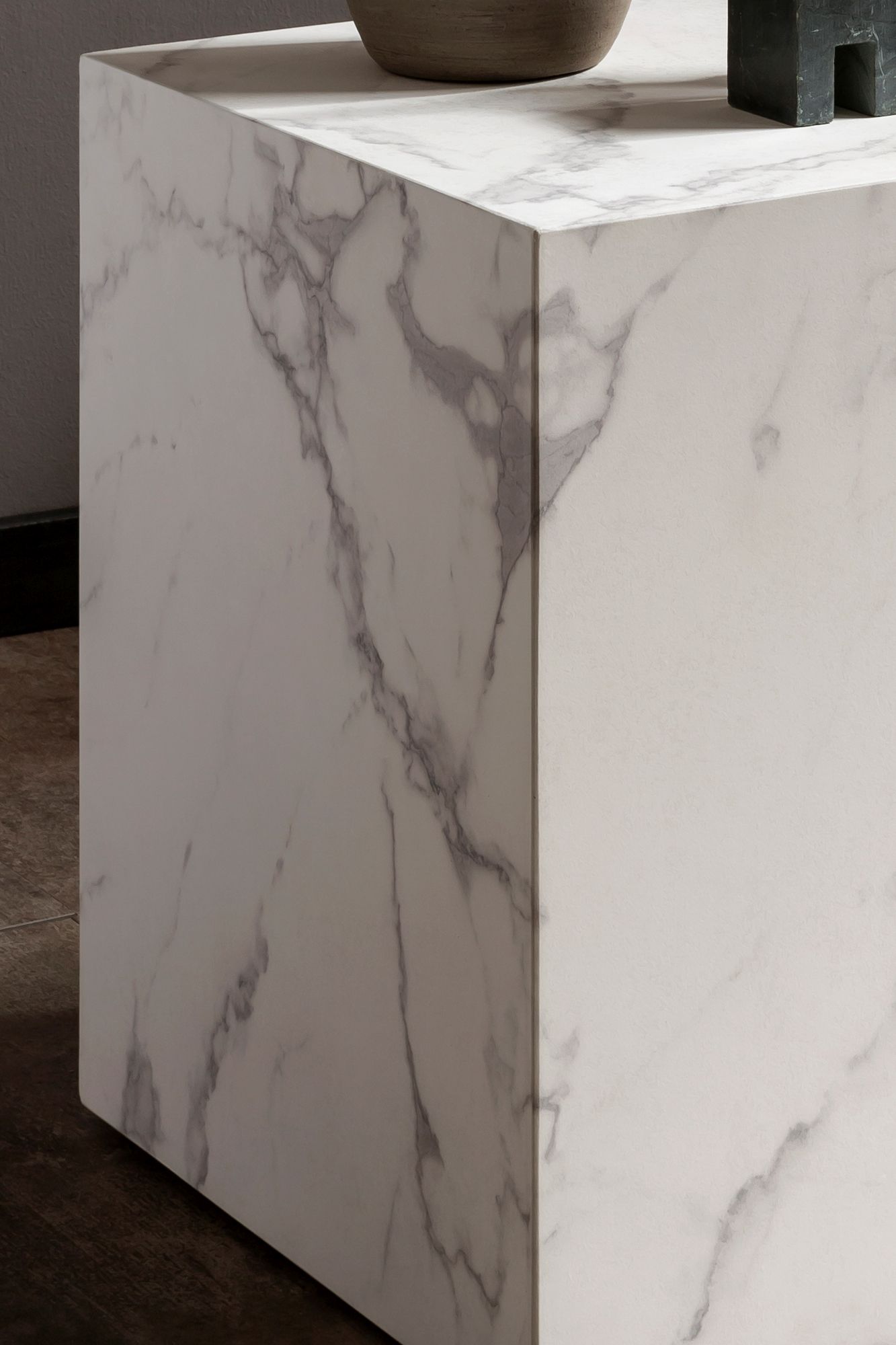Cette table d'appoint chic confèrera instantanément un aspect élégant à votre salon. La forme simple en cube avec une grande surface de rangement met particulièrement en valeur le superbe aspect marbré ton noir. La table d'appoint peut être utilisée de différentes manières : à côté du canapé, comme table de chevet ou comme décoration à poser librement dans la pièce.
