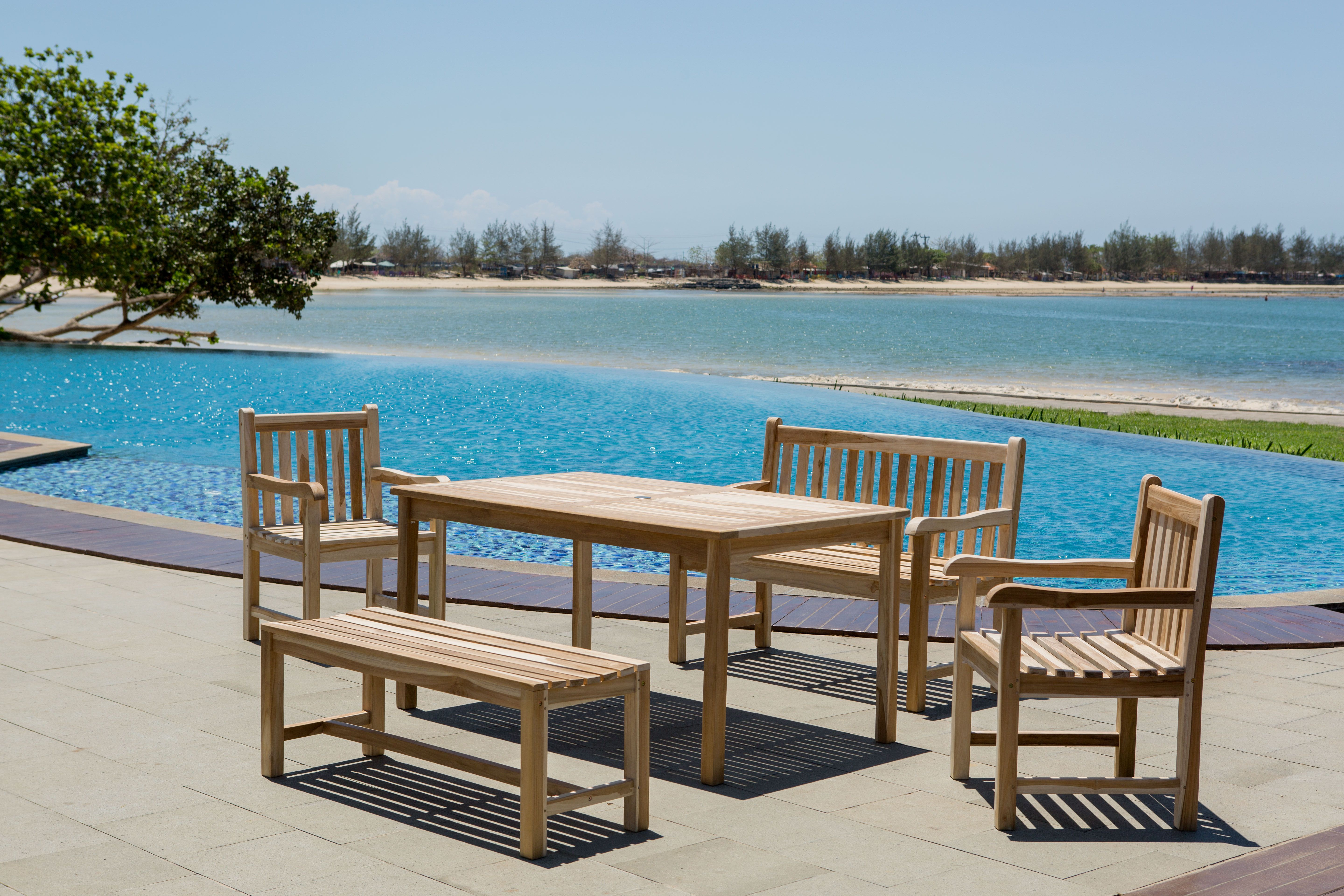 Ce meuble est entièrement laissé à l'état naturel : il n'est donc ni huilé, ni laqué ce qui peut entraîner un aspect grisâtre de la surface avec le temps. Si vous préférez un aspect "propre", nous vous conseillons de traiter les meubles avec de l'huile de teck du commerce (que vous pouvez trouver dans un magasin de bricolage) en suivant les indications de la notice.