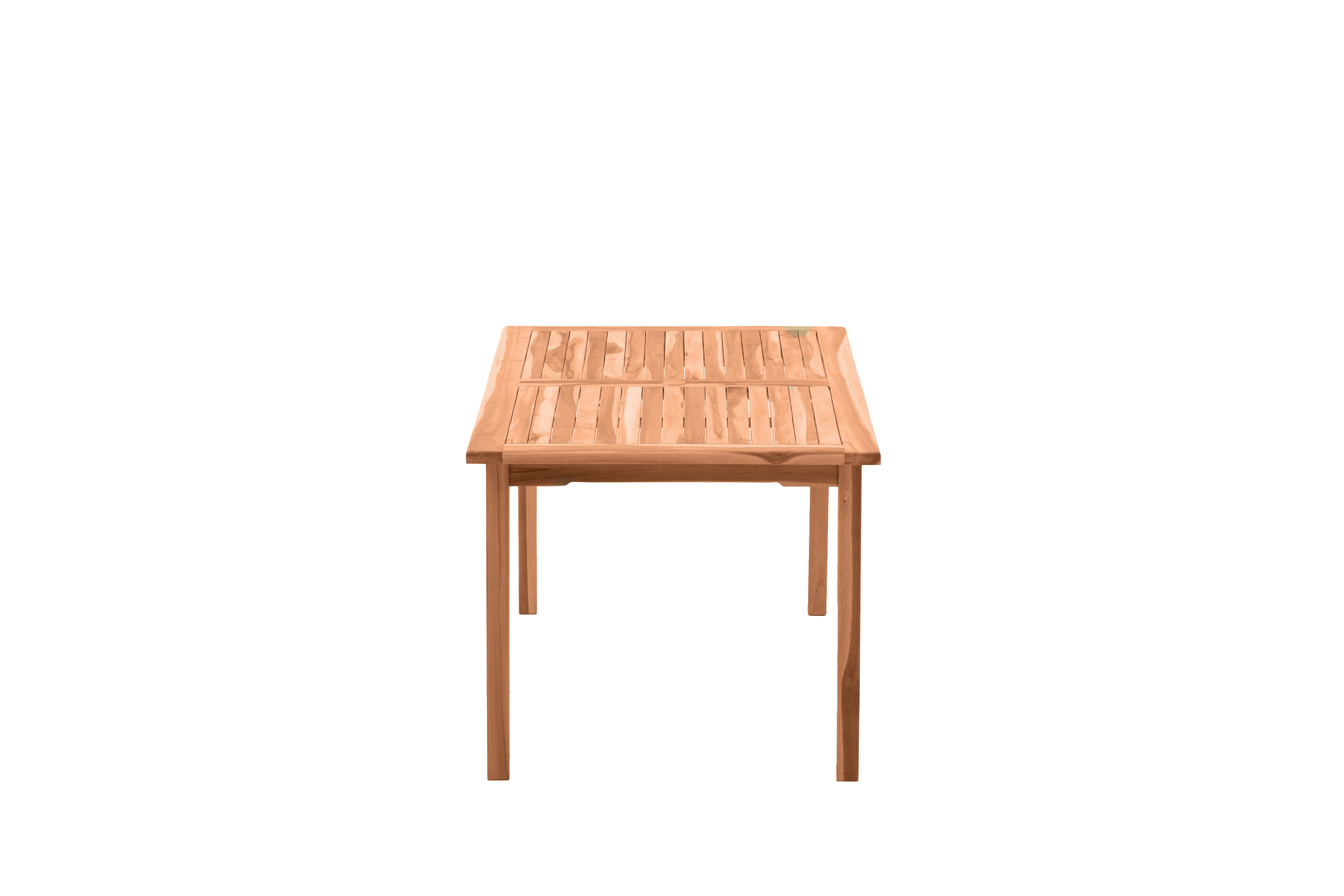 Cette table en teck dans une teinte naturelle chaleureuse est un grand classique pour le jardin et la terrasse. La table de repas robuste résiste au vent et aux intempéries et sera pendant de nombreuses années le compagnon idéal pour l'extérieur. Les lattes de bois dans différentes nuances attirent le regard sur le plateau de table. Le piètement classique à 4 pieds offre suffisamment de place pour les jambes. Pour le prochain barbecue, cette table de 150x90 cm permettra d'accueillir jusqu'à 6 convives. Bien sûr, vous pouvez également poser ce meuble à l'intérieur, par exemple en guise de table de véranda.