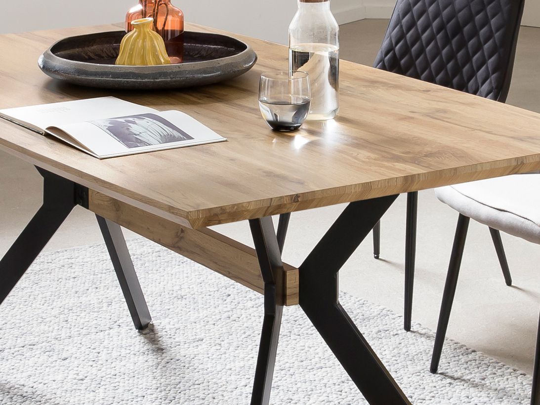 Cette table à dîner stylée rend le coin repas encore plus accueillant. Un médium (MDF) dans une fabrication de qualité a été utilisé pour le plateau. La surface est très résistante aux épreuves habituelles du quotidien. Le piètement en métal noir donne la touche finale. La table - qu'elle soit dans la cuisine ou la salle à manger - est souvent le centre des interactions sociales. Ici, on mange, on boit, on rit, on joue et on discute ensemble. Même les activités en télétravail sont plus agréables avec ce joli modèle.