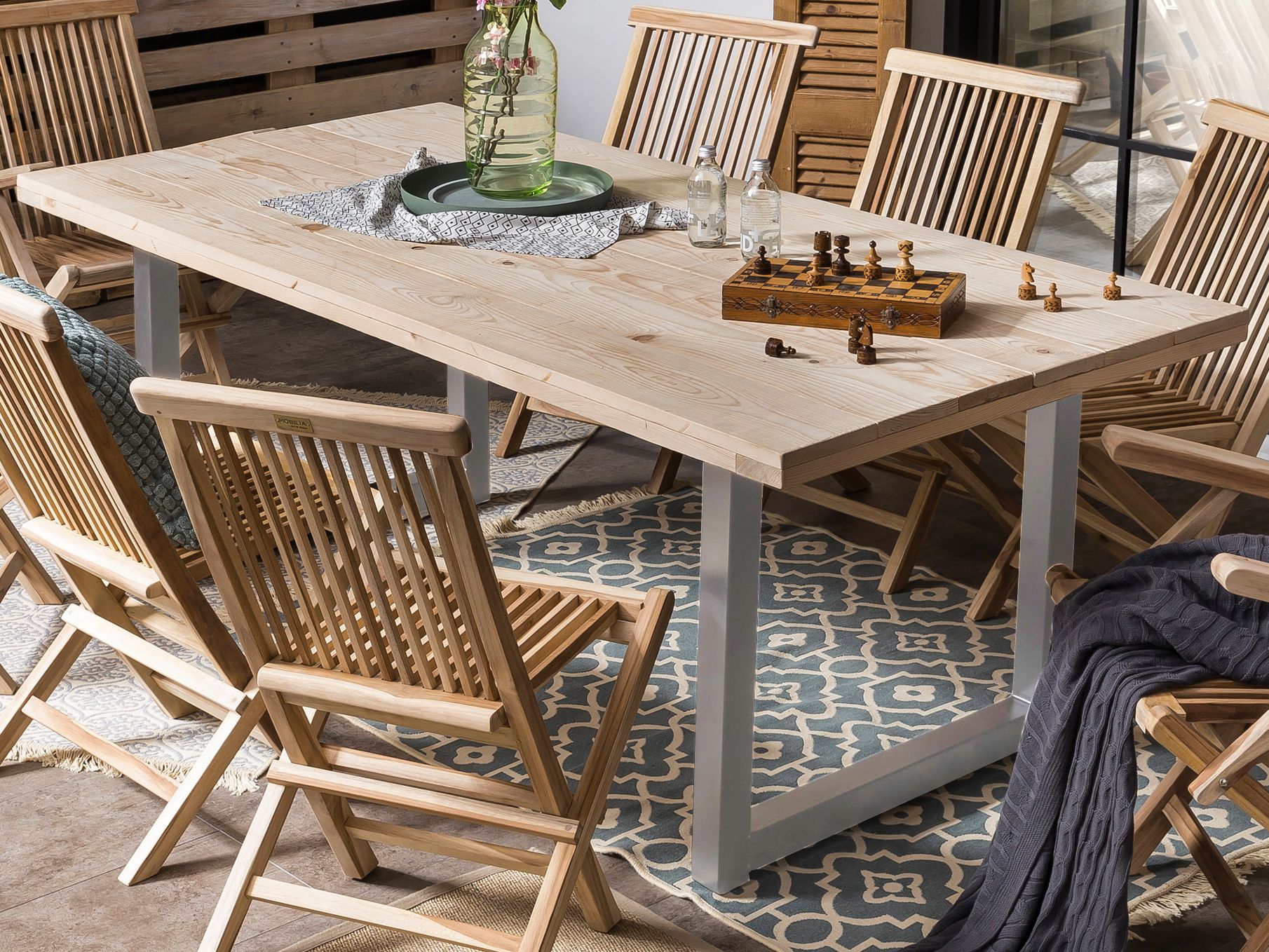 Dans la salle à manger, la véranda ou sur la terrasse : l'association du bois naturel non traité et du métal lourd confère à cette table un aspect moderne qui s'éloigne de la norme de façon positive. Le plateau de table fabriqué à la main en Allemagne avec beaucoup de soin attirera tous les regards. Cette table est à la fois rustique et élégante et peut s'utiliser à l'intérieur et à l'extérieur. Vous définissez donc vous-même l'aspect souhaité puisque la surface laissée à l'état naturel va changer selon l'utilisation. Libre à vous de protéger le bois en appliquant une couche de vernis, de lasure ou d'huile : c'est comme vous voulez ! Vous trouverez facilement les produits correspondants dans un magasin de bricolage. Si vous ne faites rien, la table développera une patine naturelle et son aspect se modifiera continuellement. Les piètements de style industriel sont délibérément maintenus dans un aspect grossier pour souligner le "look usé" voulu. En utilisant la table à l'extérieur, des taches de rouille apparaîtront probablement bientôt. Mais, là encore, c'est vous qui déciderez de l'endroit où vous placerez la table et déterminerez ainsi l'aspect final souhaité.