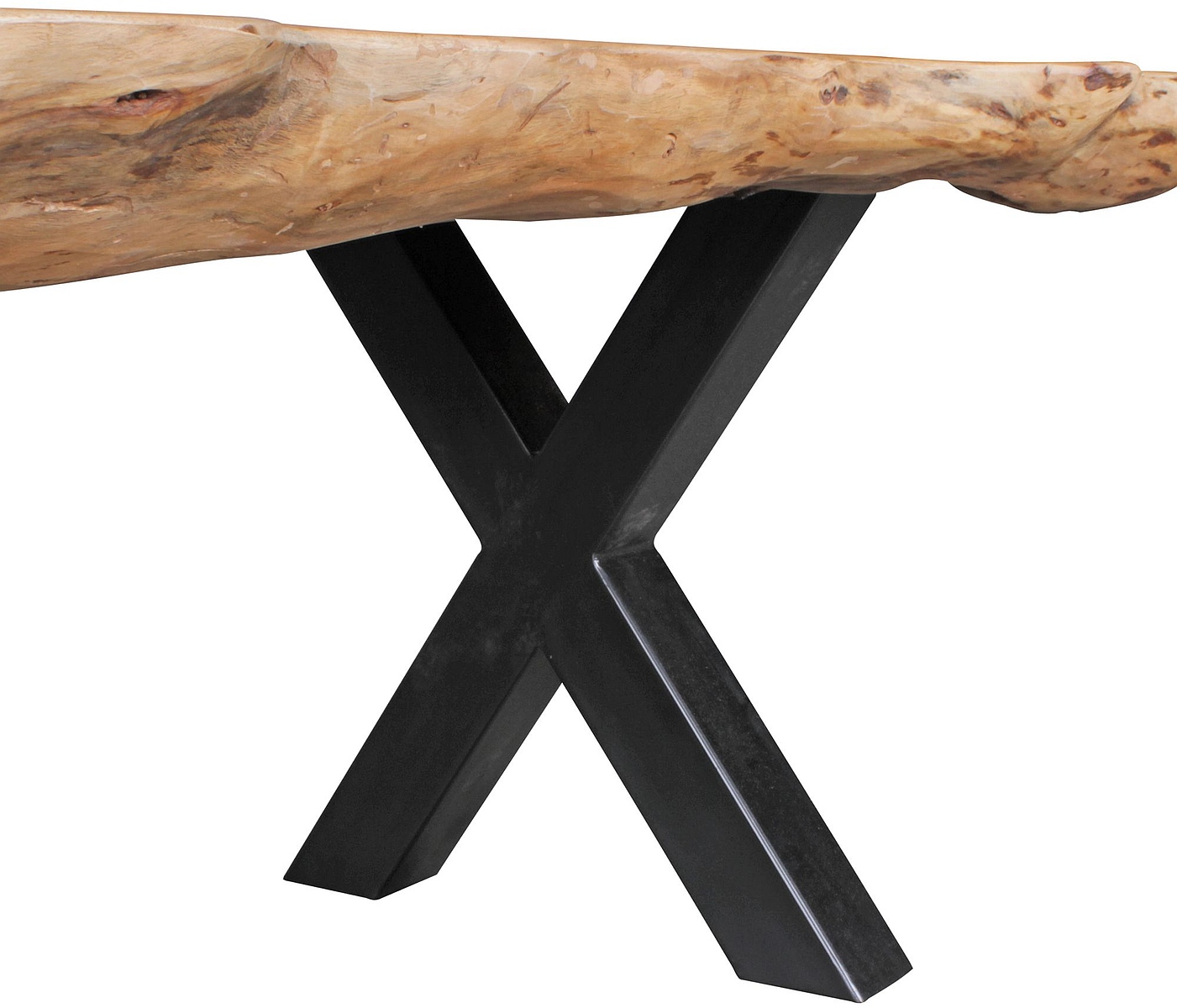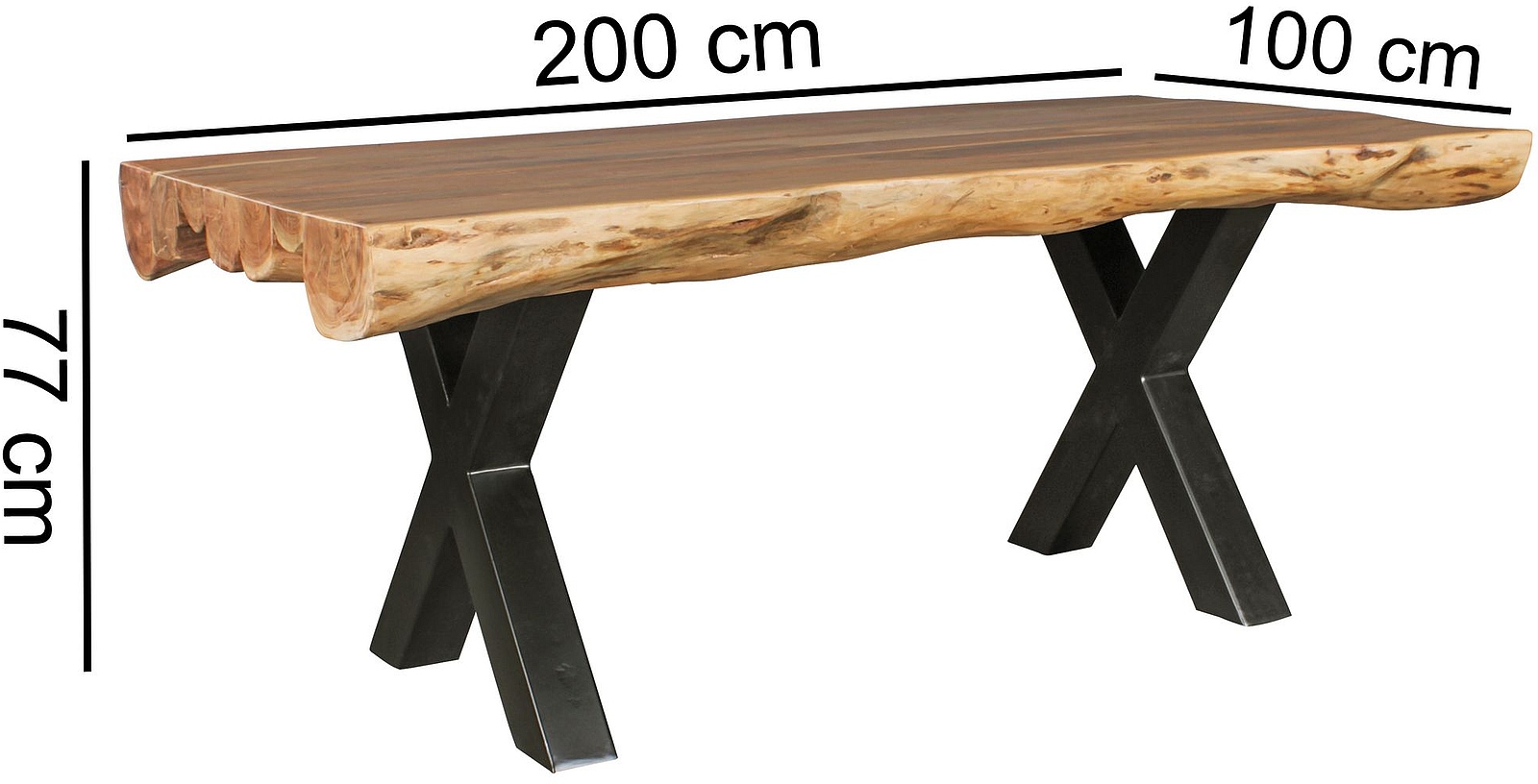 - DESIGN ✔ Table de salle à manger dans un style rustique aspect "troncs d'arbres" // Table de cuisine en bois plein // La table repose sur des pieds métalliques en forme de X
