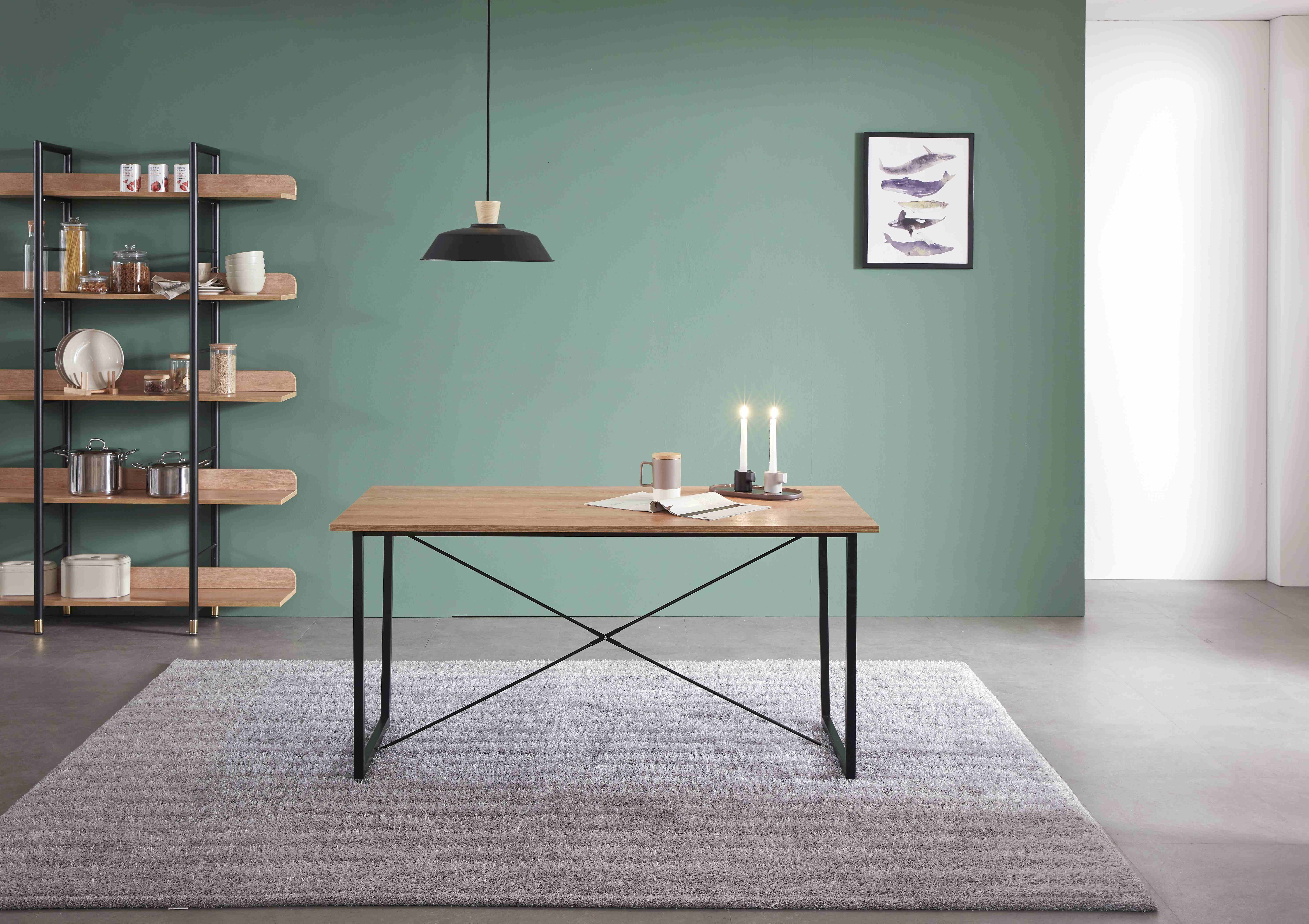 Cette table à dîner stylée rend le coin repas encore plus accueillant. Un médium (MDF) bois aspect acacia dans une fabrication de qualité a été utilisé pour le plateau. Le piètement métallique avec tiges de renfort au centre donne la touche finale. La table - qu'elle soit dans la cuisine ou la salle à manger - est souvent le centre des interactions sociales. Ici, on mange, on boit, on rit, on joue et on discute ensemble. Même les activités en télétravail sont plus agréables avec ce joli modèle.