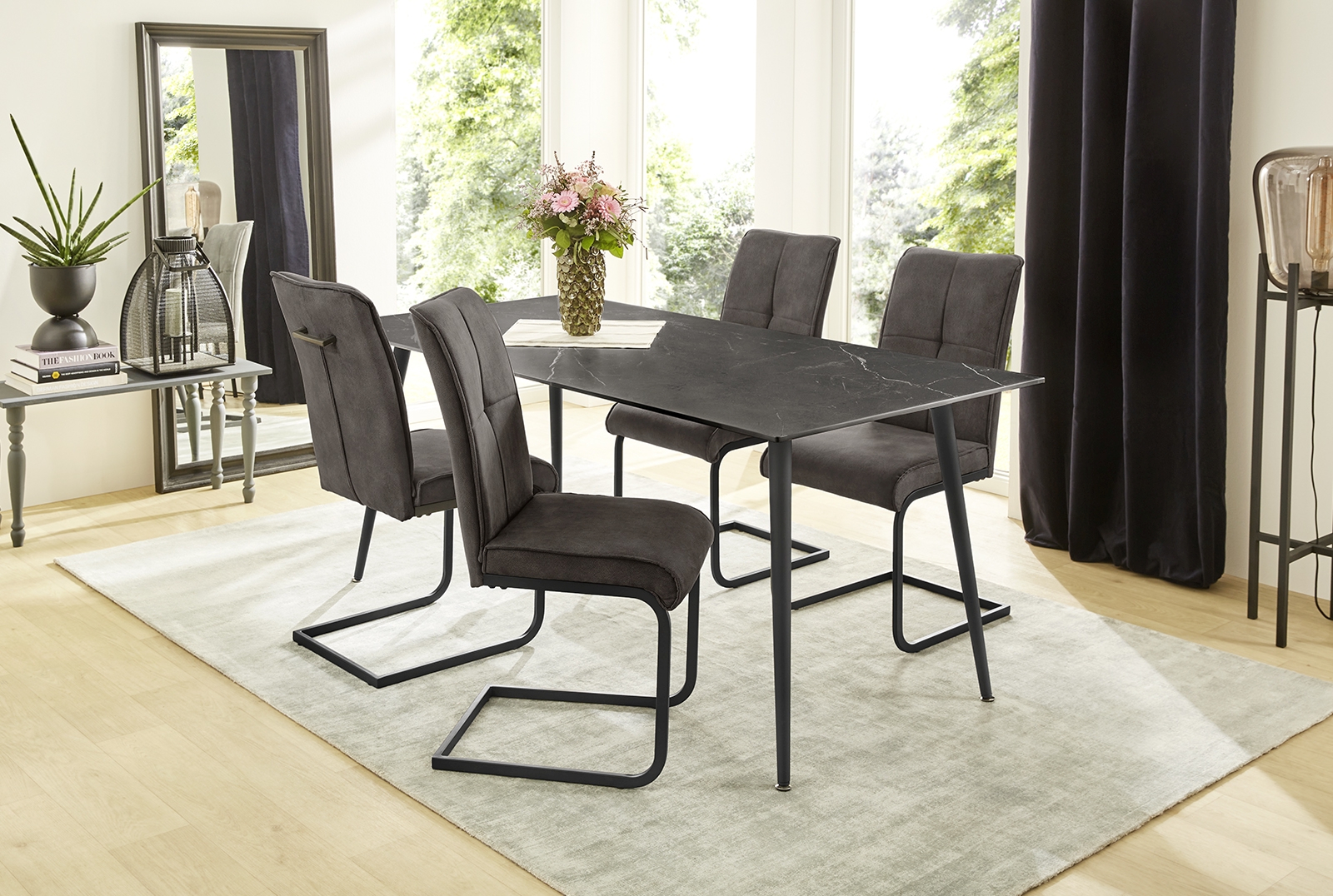 Plateau de table : plateau en céramique aspect foncé sur verre