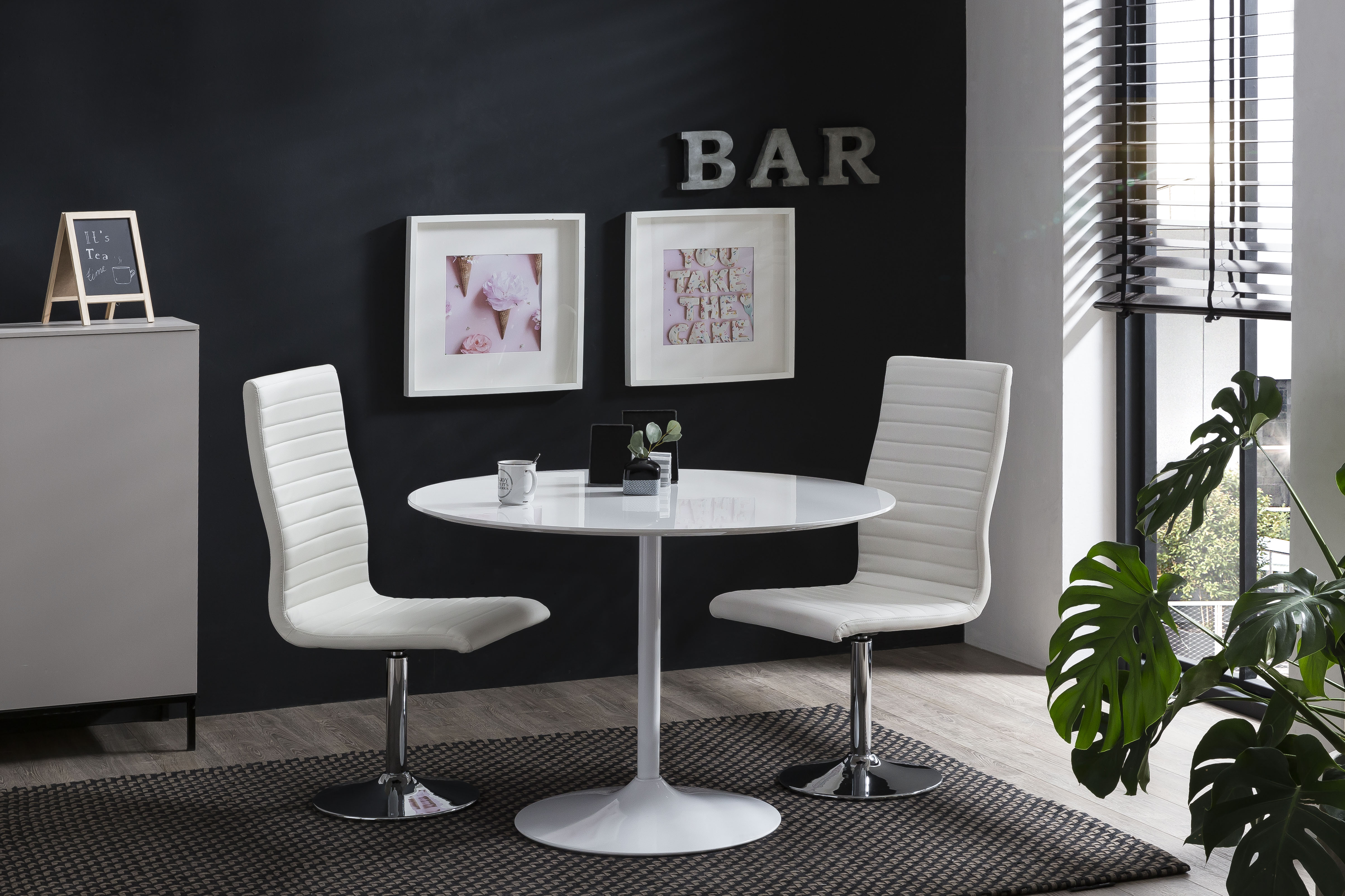 La nouvelle pièce maîtresse de votre salle à manger ! Le plateau de table rond est fabriqué en bois MDF et laqué ton blanc ultra brillant. Avec un diamètre de 110 cm, la table offre suffisamment de place pour accueillir jusqu'à 4 personnes. Le pied de table en métal finition époxy ton blanc de 60 cm de diamètre confère à la table une très bonne stabilité. Les meubles ultra brillants sont très tendance et s’adaptent à presque tous les intérieurs. De plus, la couleur blanche égayera vos pièces. Où que vous placiez cette table, dans une salle à manger ou un bistrot, elle est bien plus qu’un simple endroit où s’asseoir pour manger. Elle permet de s'attabler pour de longues discussions en famille ou entre amis.