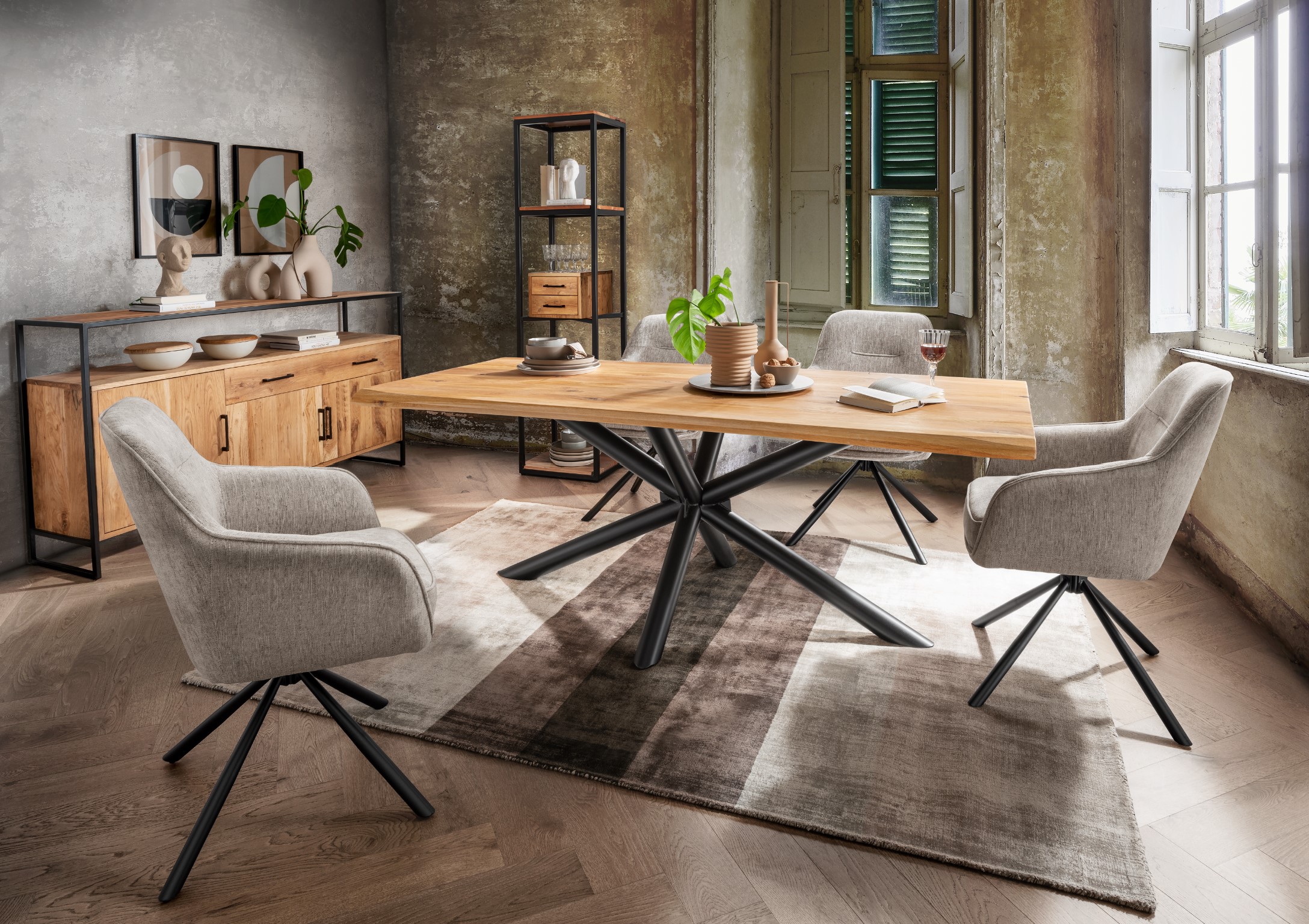 Plateau de table : chêne huilé 40 mm d’épaisseur avec chant doublé (veinage en décalé)