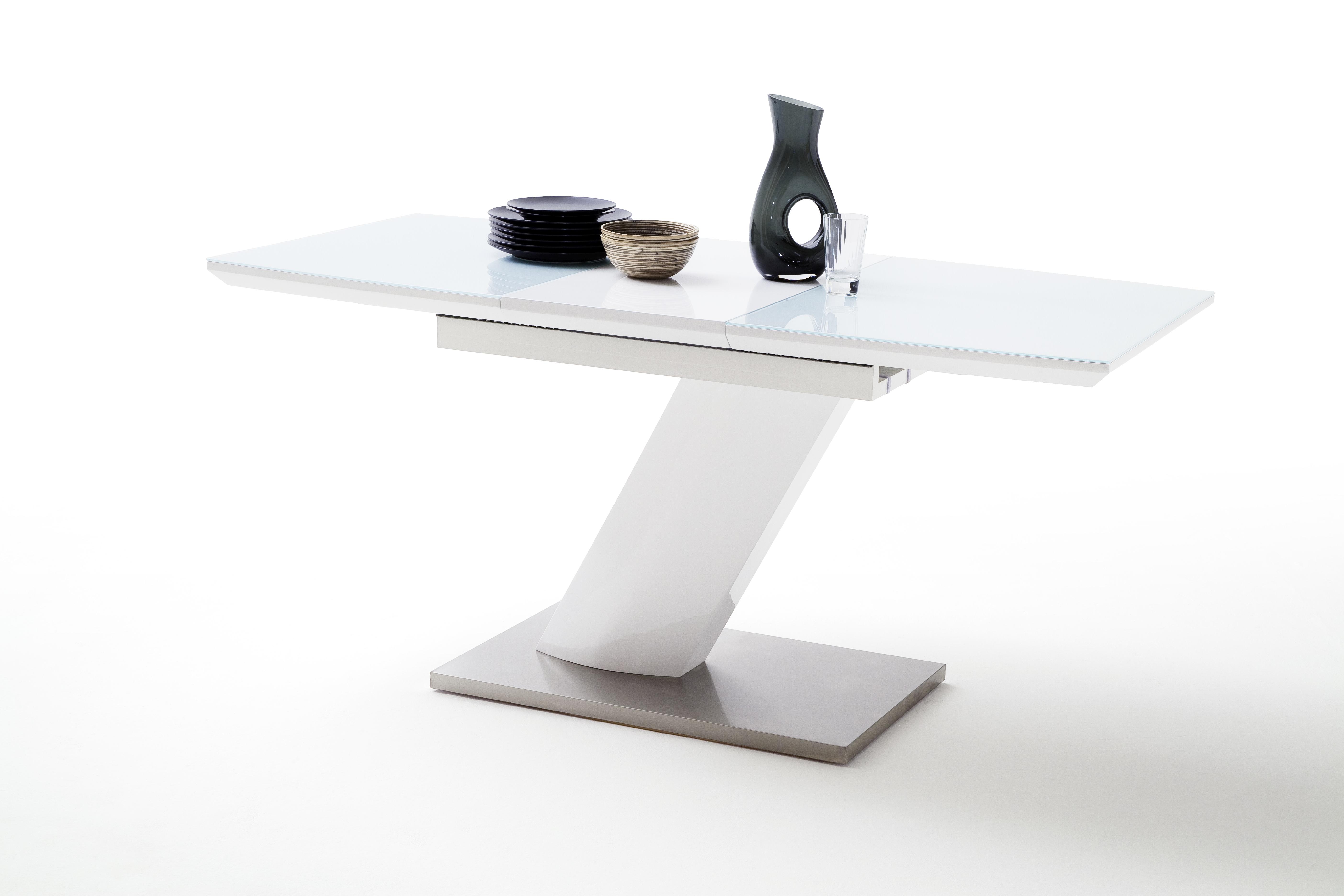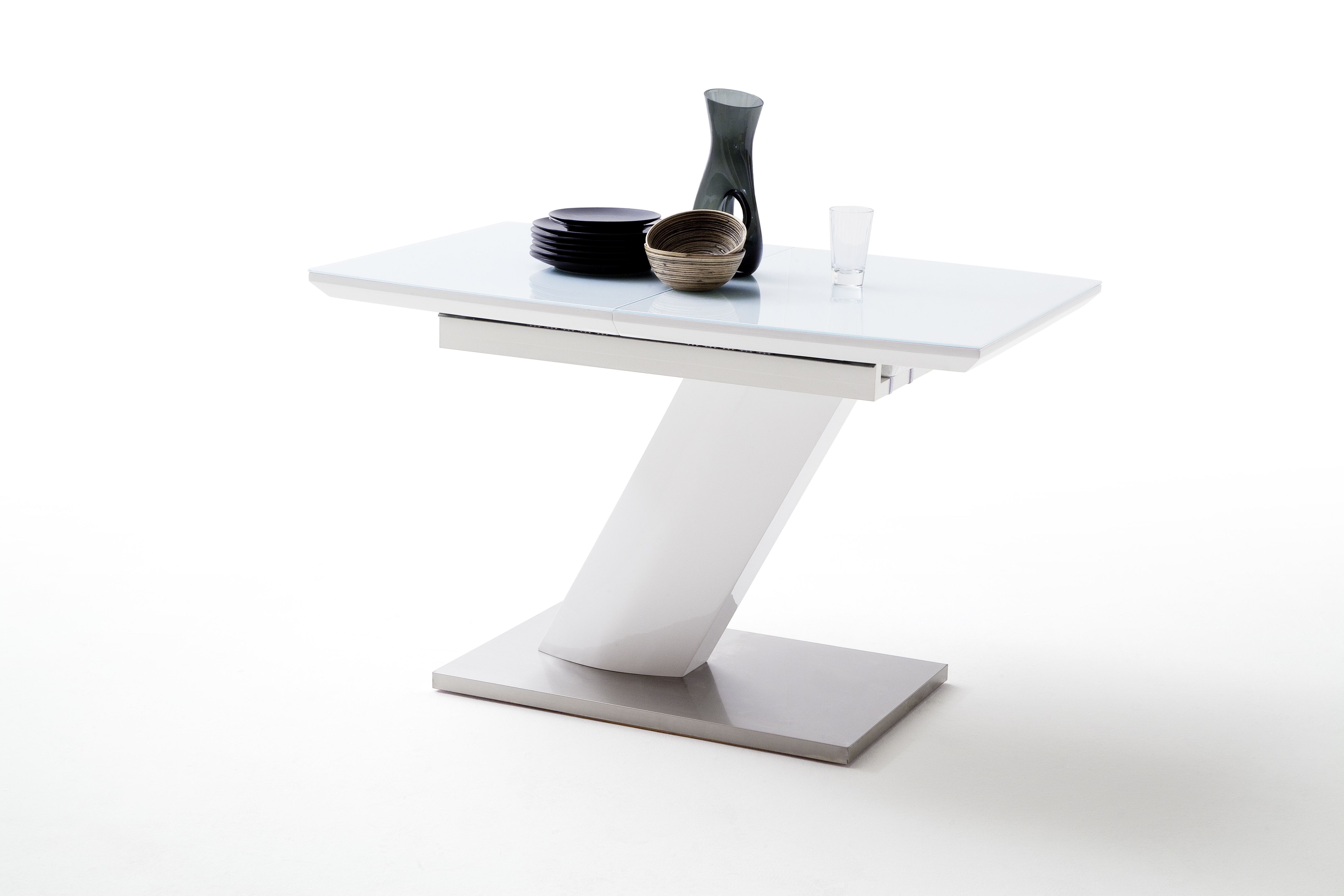 Colonne et allonge rabattable : MDF laqué ton blanc ultra brillant
