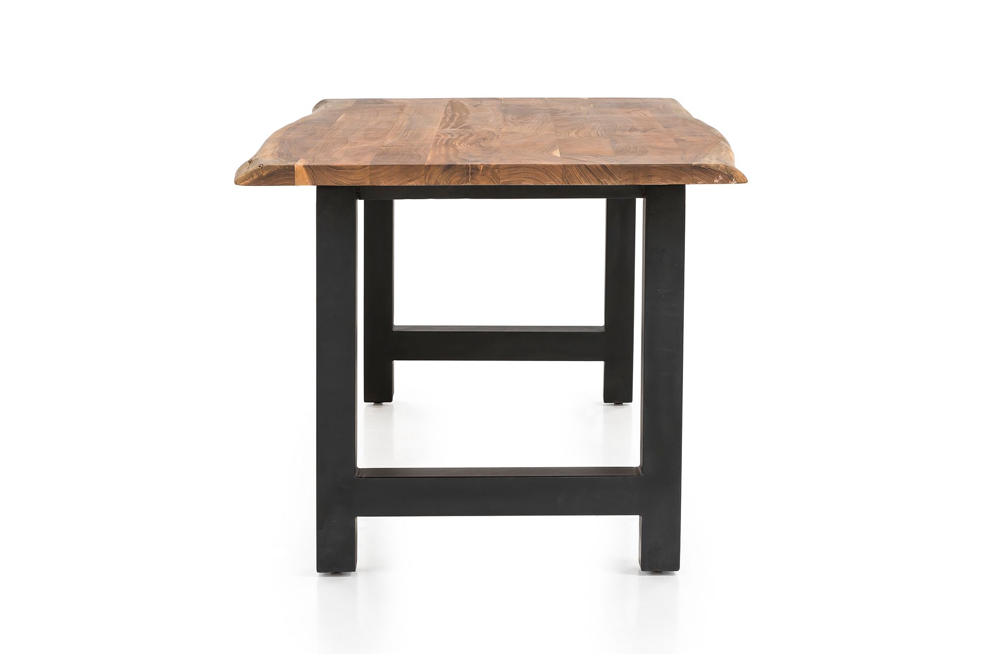 Les meubles en bois massif d'acacia font partie d'un mobilier à la fois beau et intemporel qui n'est jamais démodé. Le plateau de table de 35 mm d'épaisseur aux chants de forme naturelle est en bois d'acacia. Il a été huilé et ciré deux fois, ce qui rend la surface résistante et déperlante. Le piètement en H en métal noir confère à la table une excellente stabilité et représente un contraste bienvenu avec le joli plateau ton naturel. Cette table de salle à manger est bien plus qu'un endroit pour prendre le repas. Faites entrer un peu de nature dans votre intérieur. Remarque : comme cette table en bois massif est un produit naturel, elle peut présenter des nœuds ou des variations de teinte qui ne sont pas des défauts, mais qui soulignent le caractère individuel du bois véritable. La profondeur peut également varier en raison de la forme naturelle. Tous ces détails font de cette table à dîner une pièce véritablement unique.