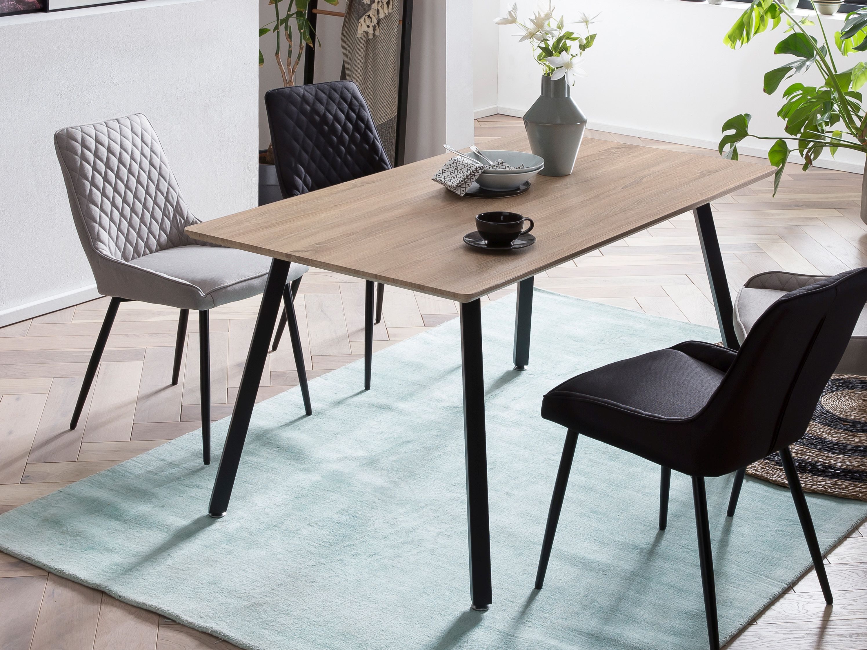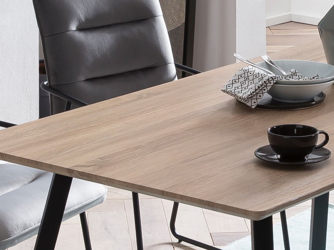 Cette table à dîner stylée rend le coin repas encore plus accueillant. Un médium (MDF) dans une fabrication de qualité a été utilisé pour le plateau. Grâce au revêtement en résine mélaminée, la surface est très résistante aux épreuves habituelles du quotidien. Le piètement en métal finition époxy donne la touche finale. La table - qu'elle soit dans la cuisine ou la salle à manger - est souvent le centre des interactions sociales. Ici, on mange, on boit, on rit, on joue et on discute ensemble. Même les activités en télétravail sont beaucoup plus agréables avec ce joli modèle.