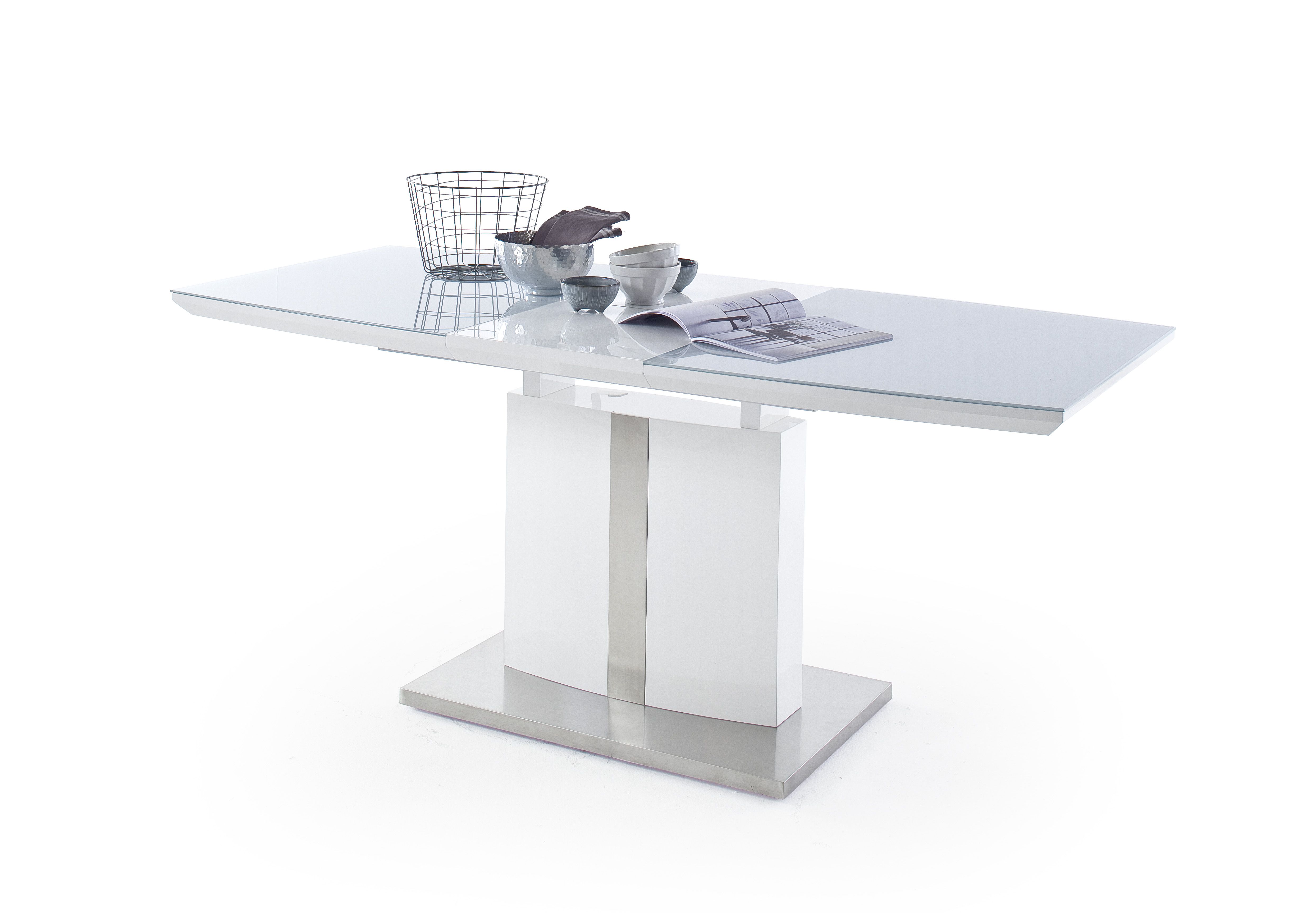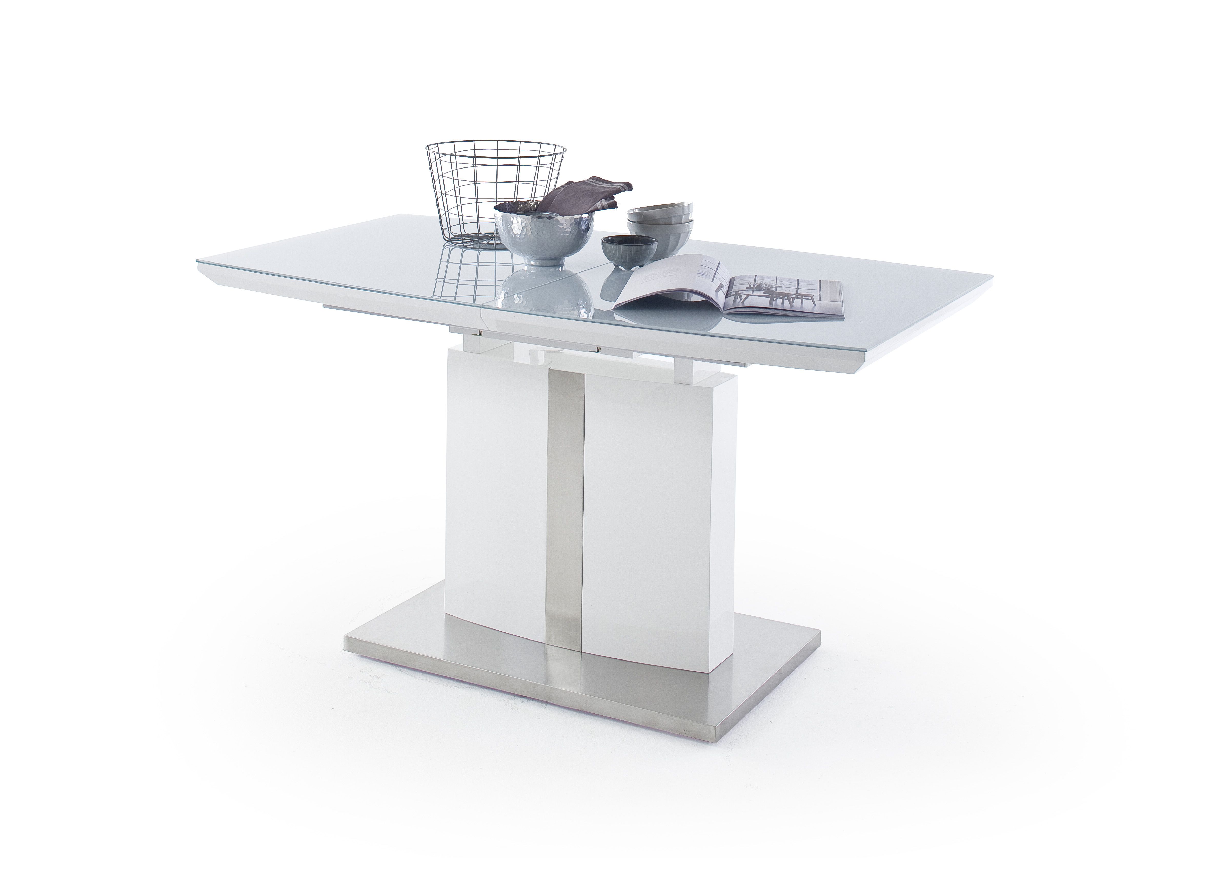 Plateau de table : MDF ton blanc ultra brillant, verre de sécurité laqué ton blanc
