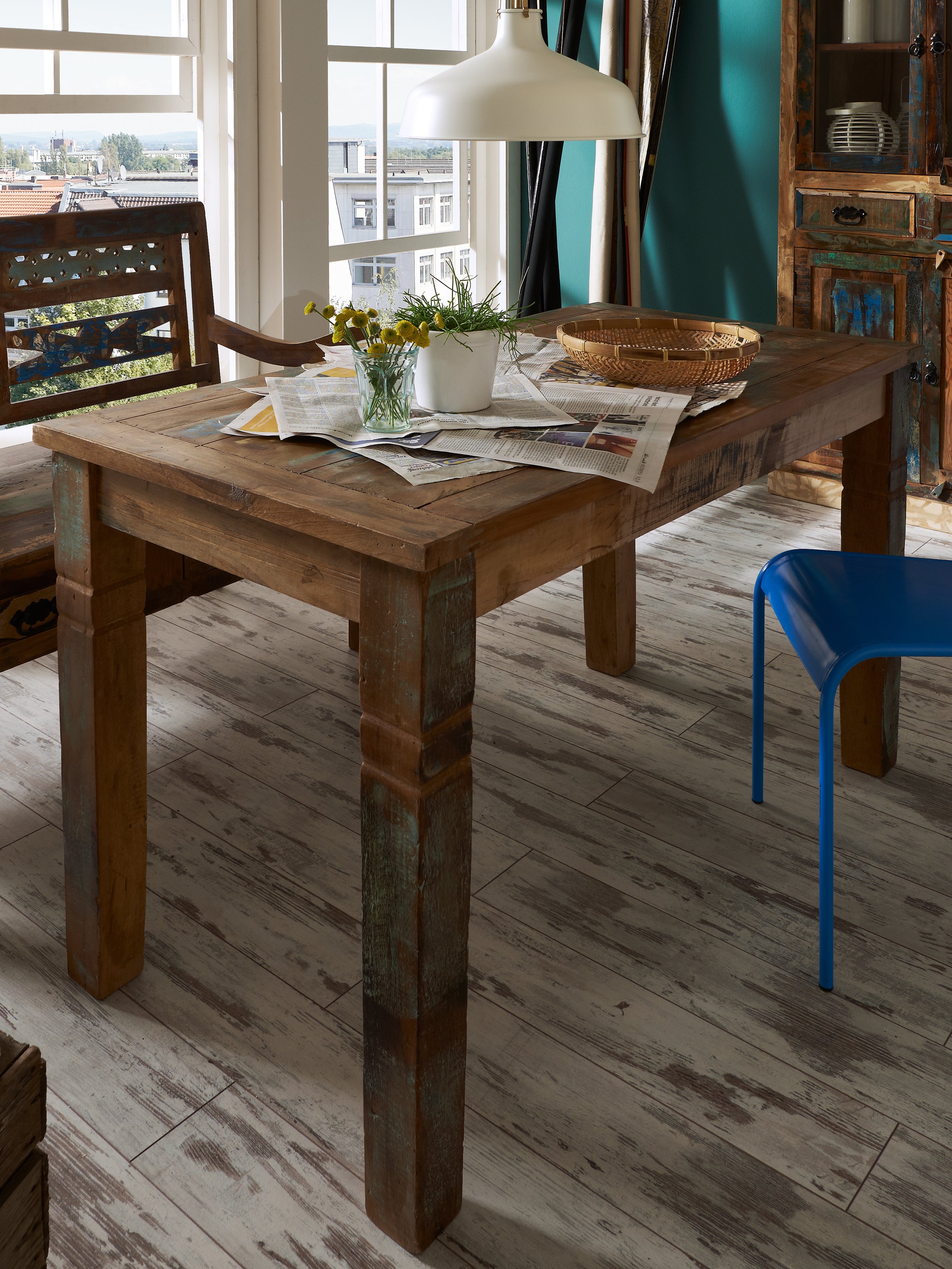 Vieux bois véritable massif (Inde) laqué ton multicolore