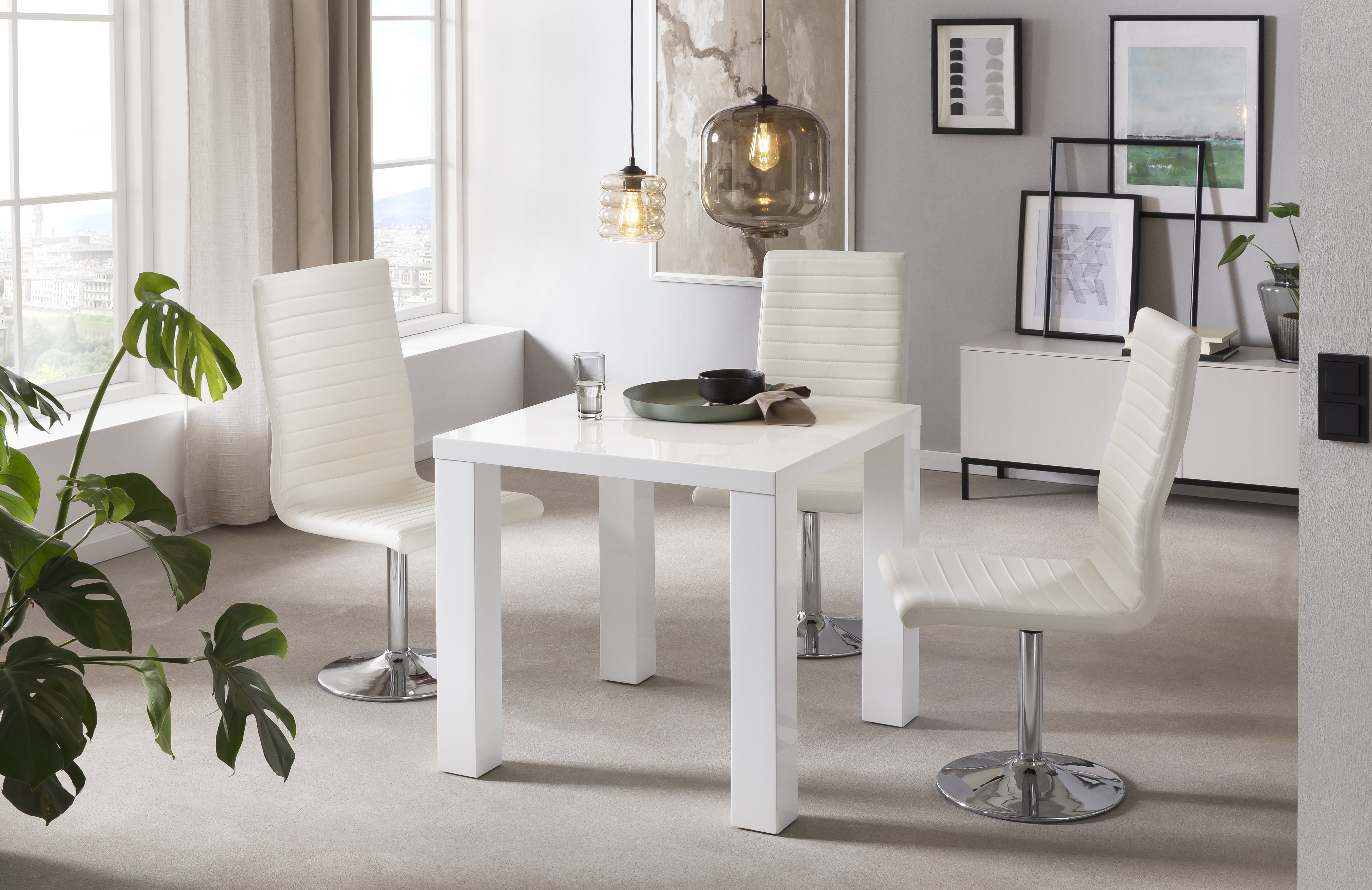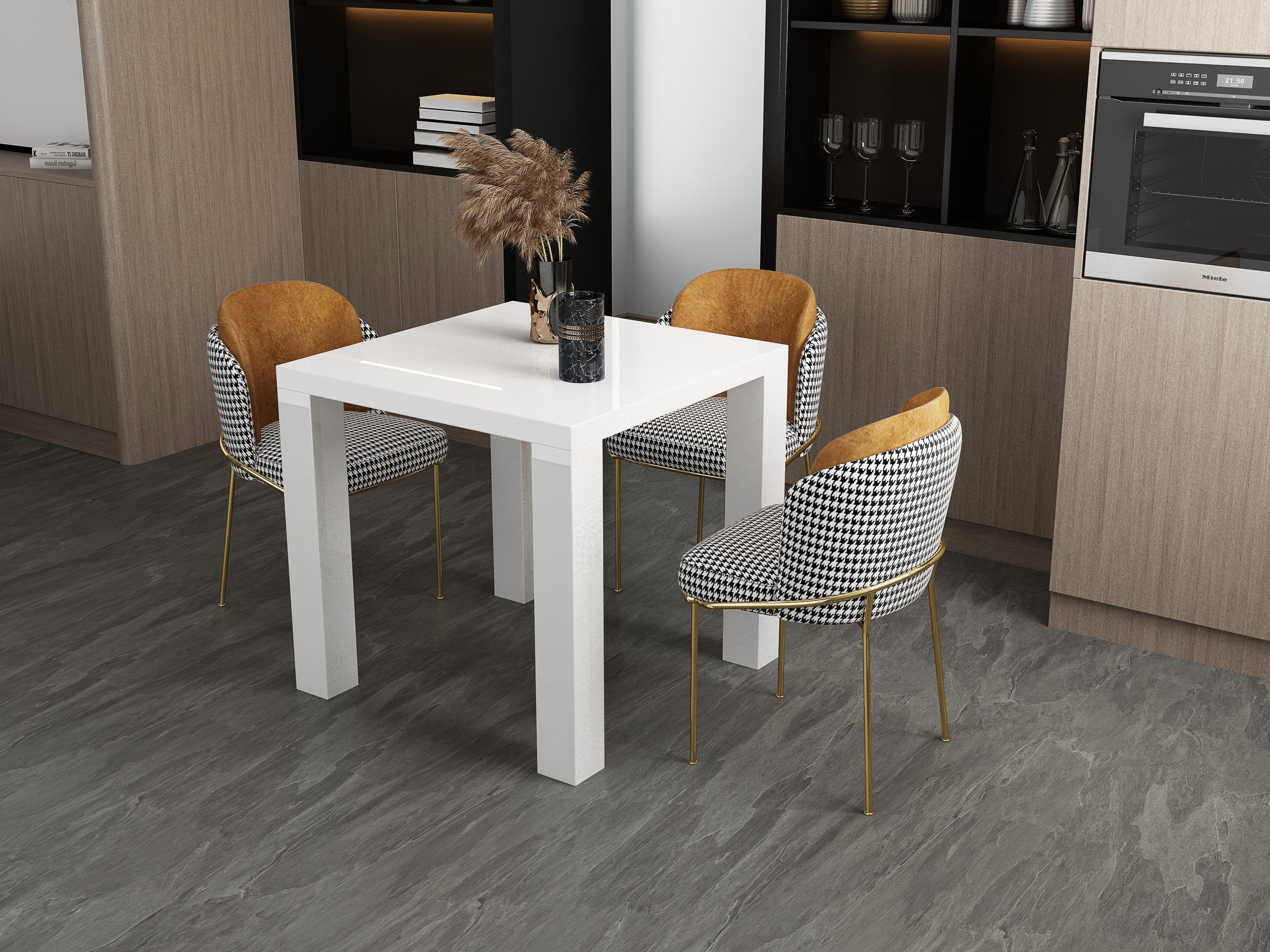 Si vous aimez les meubles aux lignes épurées, vous allez adorer cette table à dîner. Cette table conférera à votre salle à manger ou à votre cuisine l'éclat qu'elle mérite. La table est fabriquée en bois MDF. Grâce au vernis ultra brillant ton blanc, les formes aux lignes claires sont joliment mises en valeur. Les quatre pieds ne sont pas seulement ultra larges : ils confèrent aussi à la table une excellente stabilité. La table de salle à manger ne constitue pas seulement un espace pratique pour prendre le repas : c'est également un lieu de rencontre pour les soirées jeux entre amis ou en famille. La simplicité qui nous plaît !