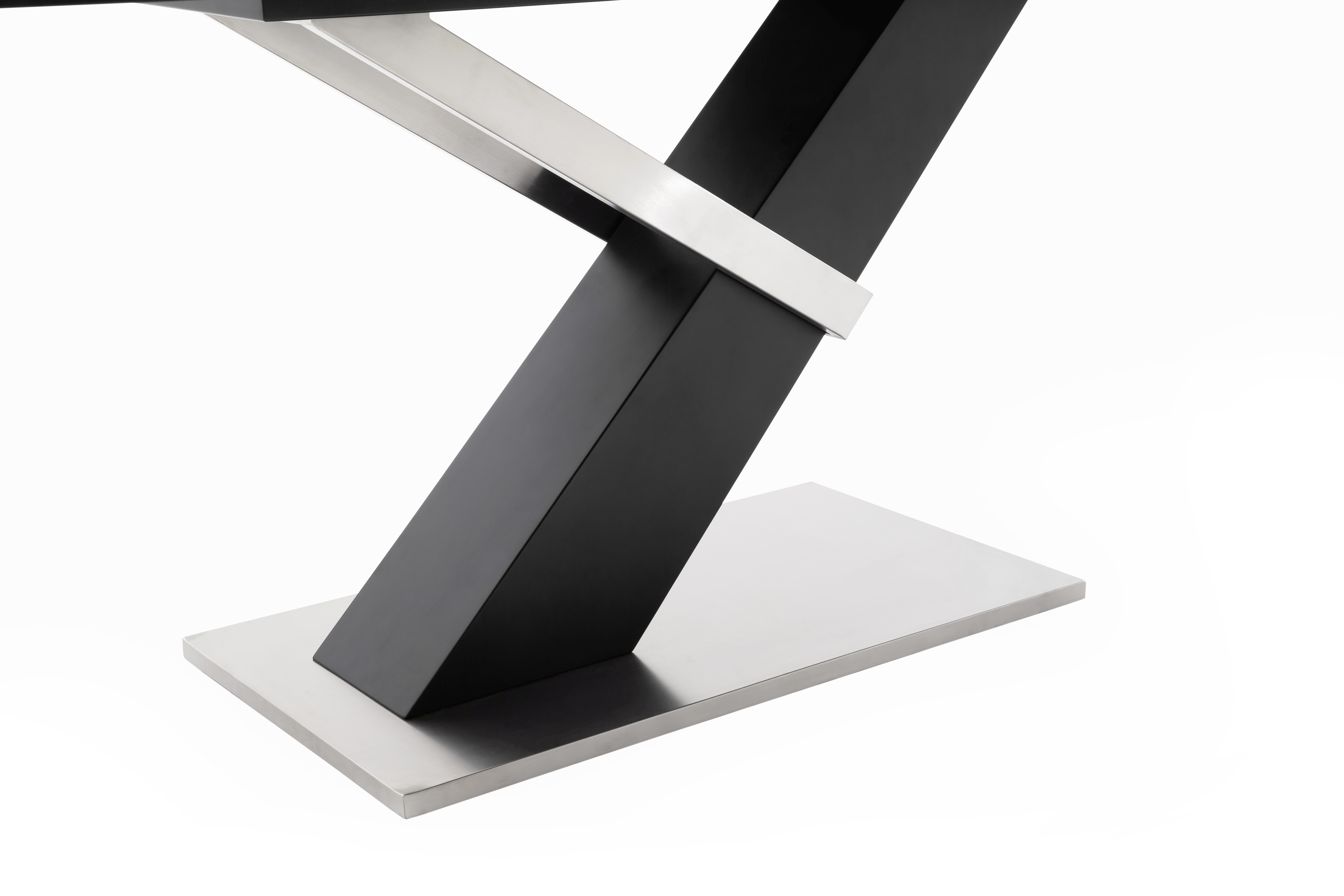 Colonne : MDF (panneau de fibres de bois de densité moyenne) laqué ton noir mat et inox brossé