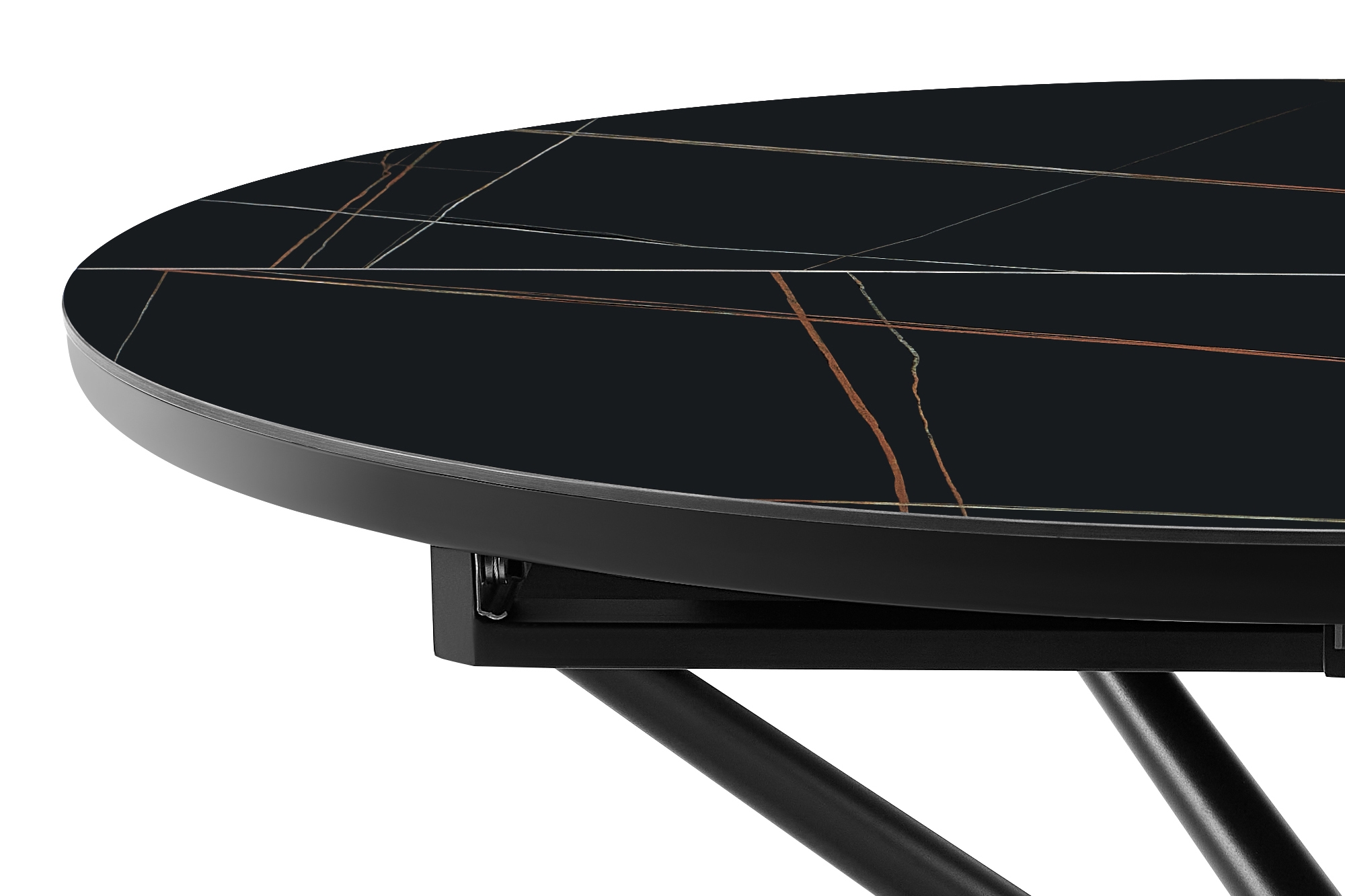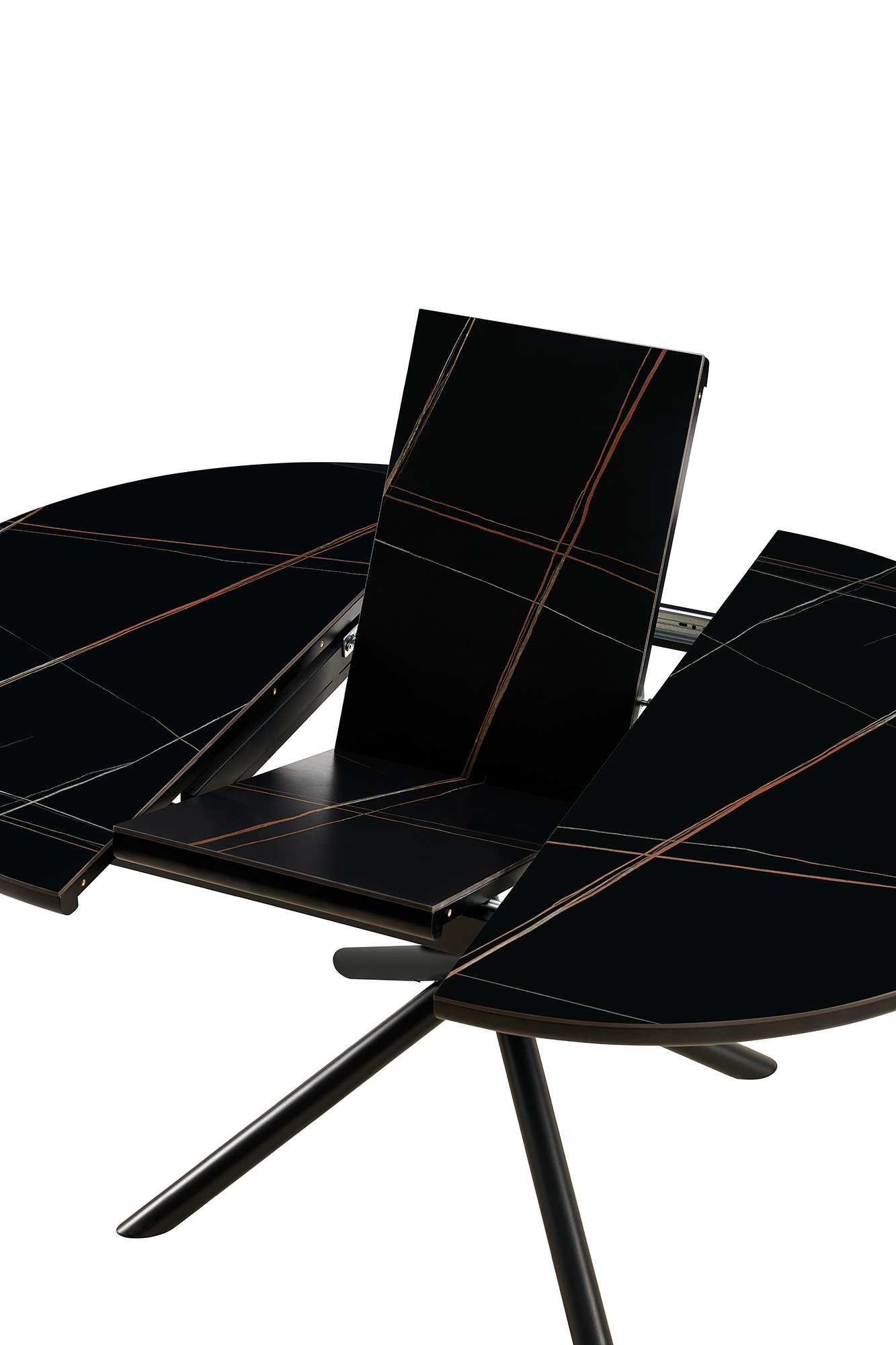 Un design ultra tendance et une utilisation très pratique. Cette table de salle à manger à rallonges n'attire pas seulement le regard, elle s'agrandit aussi facilement en quelques gestes. Pour les fêtes de famille, les invités surprises ou les soirées conviviales entre amis, la table peut être facilement agrandie jusqu'à une taille de 160x120 cm grâce aux deux rallonges amovibles. La surface dans un aspect marbre minimaliste est intemporelle et chic ; elle s'harmonise parfaitement avec le piètement design de forme étoilée. L’effet mat apporte la touche final à l’ensemble. Sans les rallonges, la table a un diamètre de 120 cm. Les tables rondes permettent de gagner de la place, surtout dans les petites salles à manger, et d'avoir des conversations agréables autour d'une table.