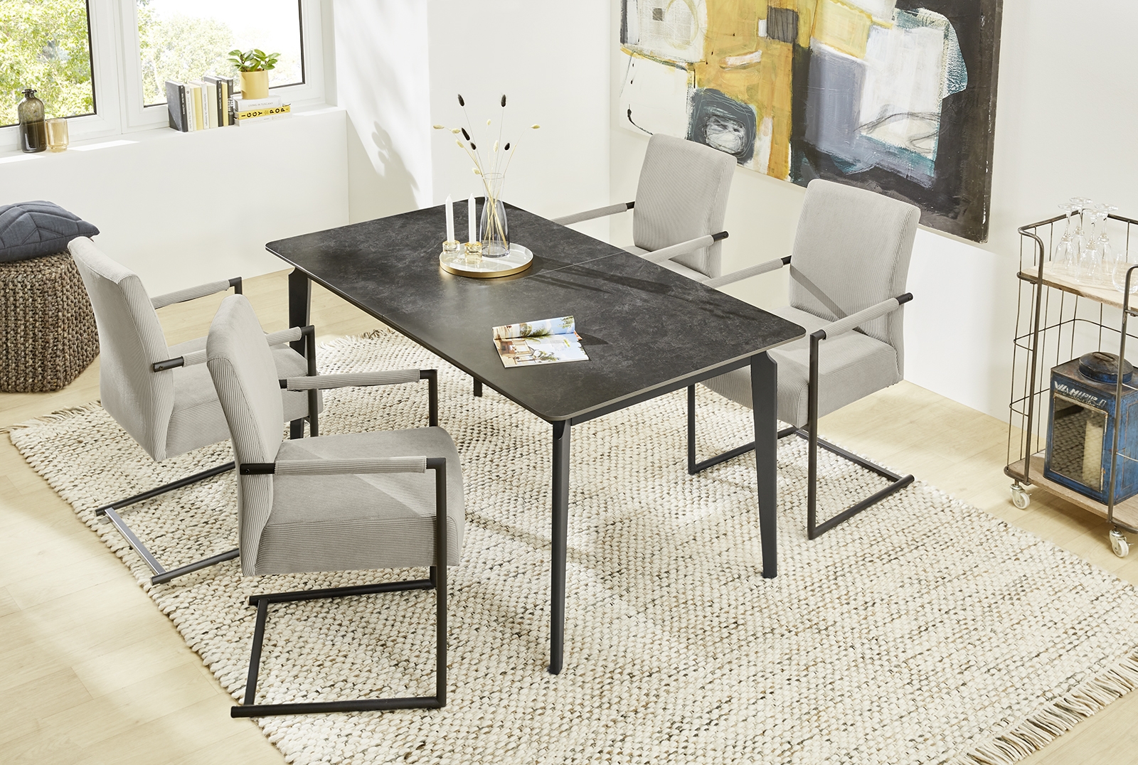 Plateau de table : plateau en céramique sur verre ton anthracite