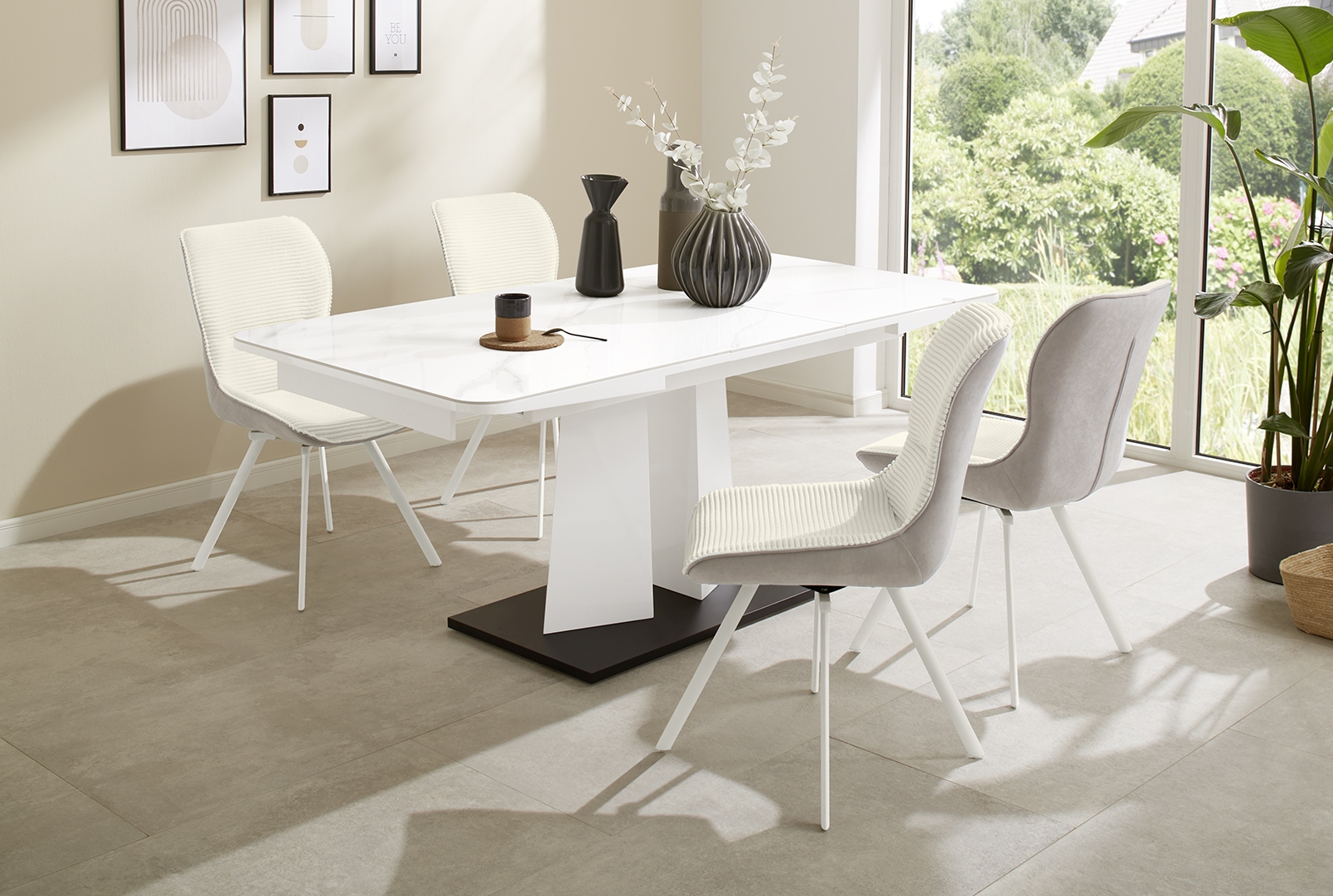 Piètement : ton blanc ultra brillant avec socle ton noir