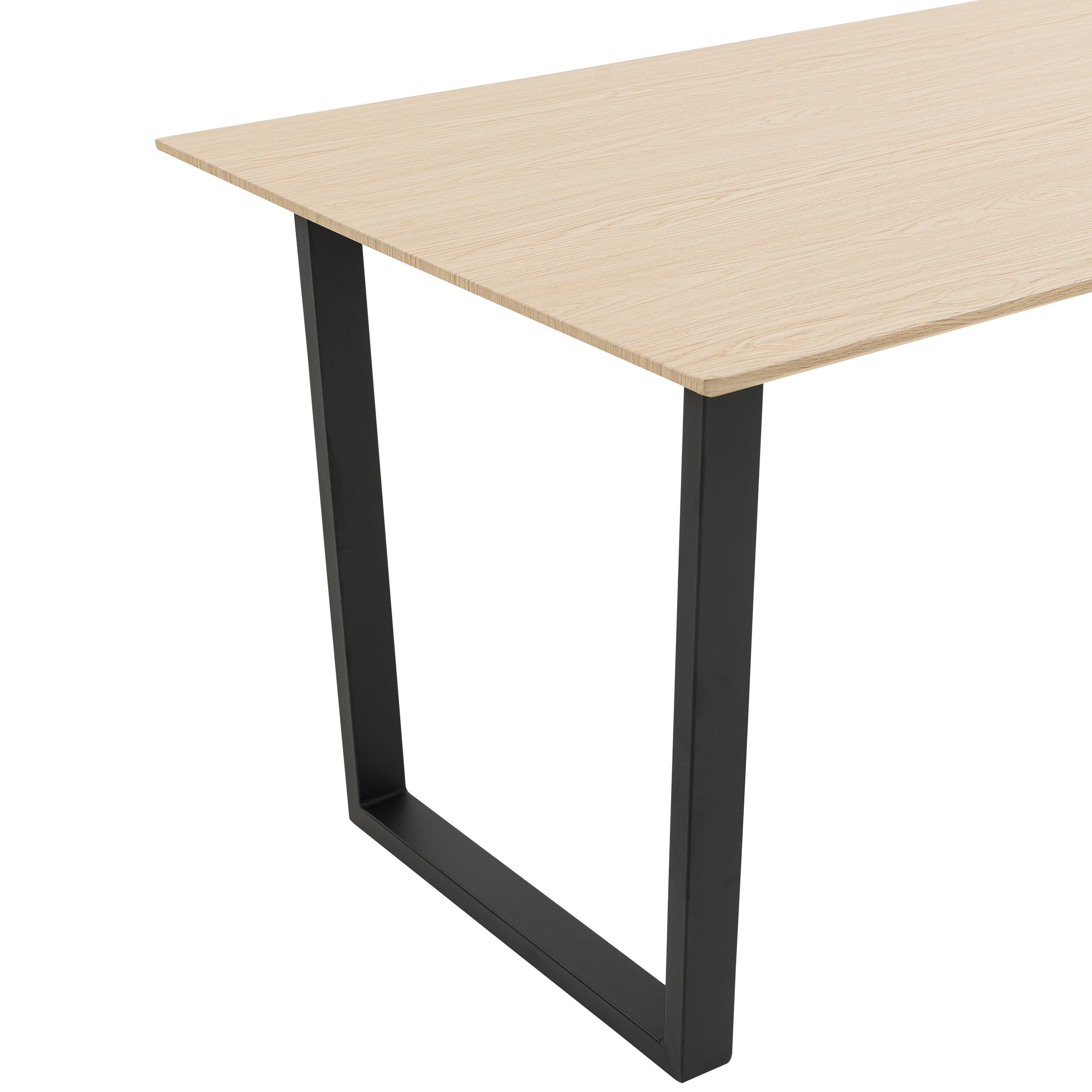 Cette table combine design moderne et construction robuste, ideale pour la salle a manger, lespace de travail ou le salon. Le plateau en MDF chene naturel seduit par son apparence naturelle et une epaisseur denviron 25 mm, garantissant solidite et durabilite. La structure metallique noire assure un support stable et confere a la table un look moderne et minimaliste. Avec une capacite de charge allant jusqua 100 kg, la table est adaptee a de multiples usages, quil sagisse de repas, de travail ou de decoration. La livraison seffectue sans decoration ni autres meubles, permettant une integration flexible dans differents concepts damenagement.