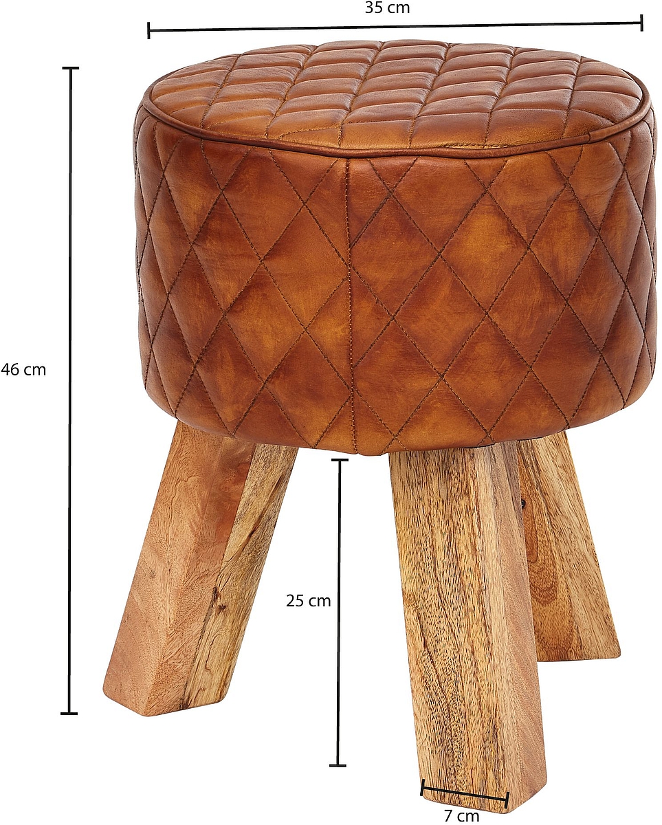 - SIÈGE ÉLÉGANT✔ Le cuir véritable et le bois massif s'unissent en un mélange élégant de matériaux qui attire l'œil immédiatement ! Pour couronner le tout en matière de design, la surface de ce petit tabouret a été pourvue d'un matelassage en forme de losanges. Ainsi, ce tabouret en cuir n'est pas seulement un siège très confortable, mais il est aussi un très beau à regarder.