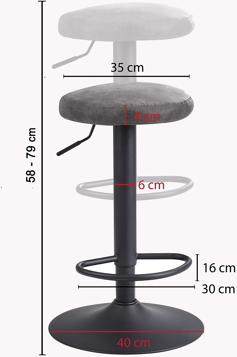 DIMENSIONS ✔ Largeur : 40 cm // Hauteur : 58 - 79 cm // Profondeur : 40 cm // Hauteur d'assise : 58 - 79 cm // Dimensions surface d'assise : 35 cm // Poids maxi : 100 kg.