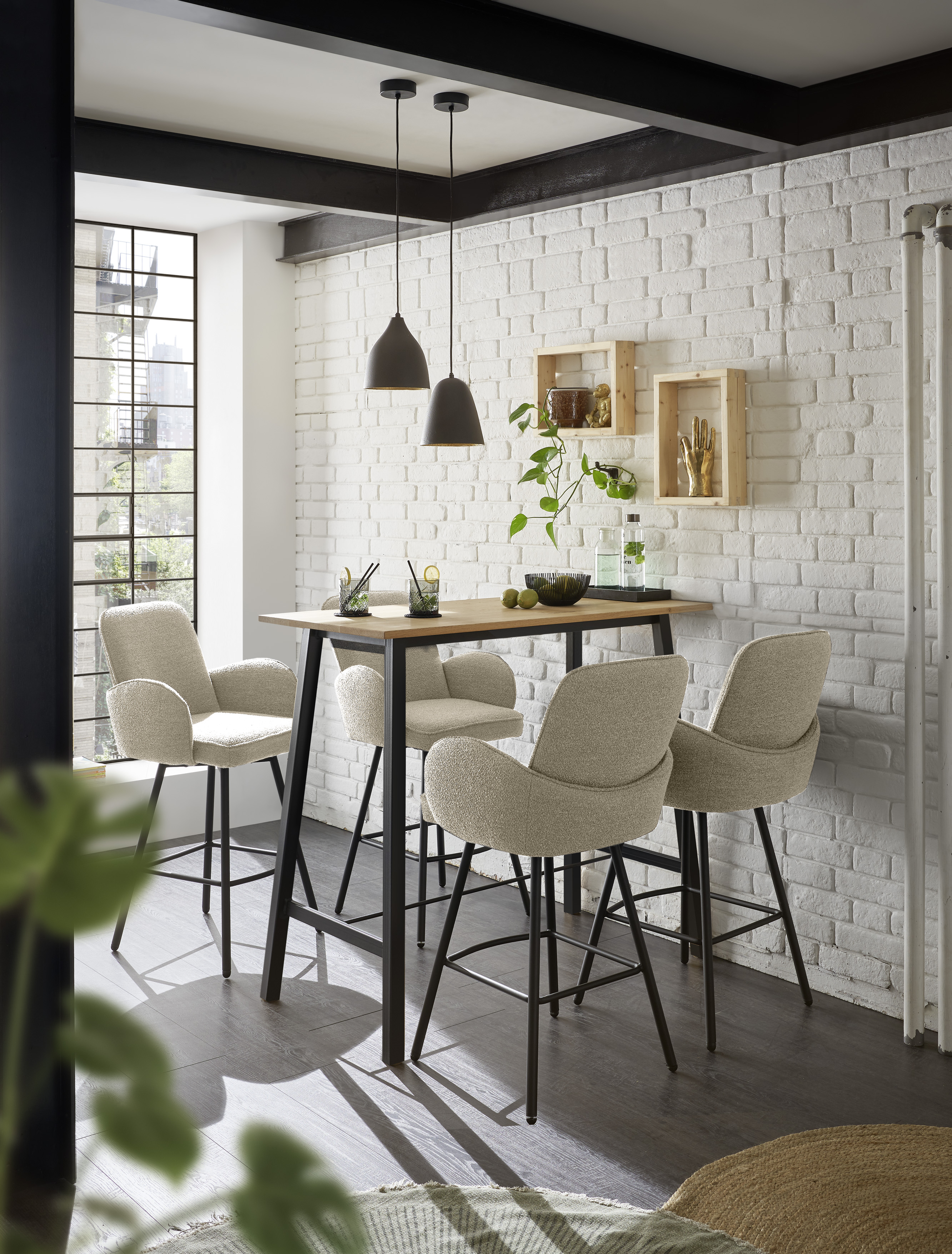 L'élégant tabouret de bar Malia de freiraum allie un design moderne à un grand confort d'assise et est parfait pour la cuisine, le bar ou le comptoir.