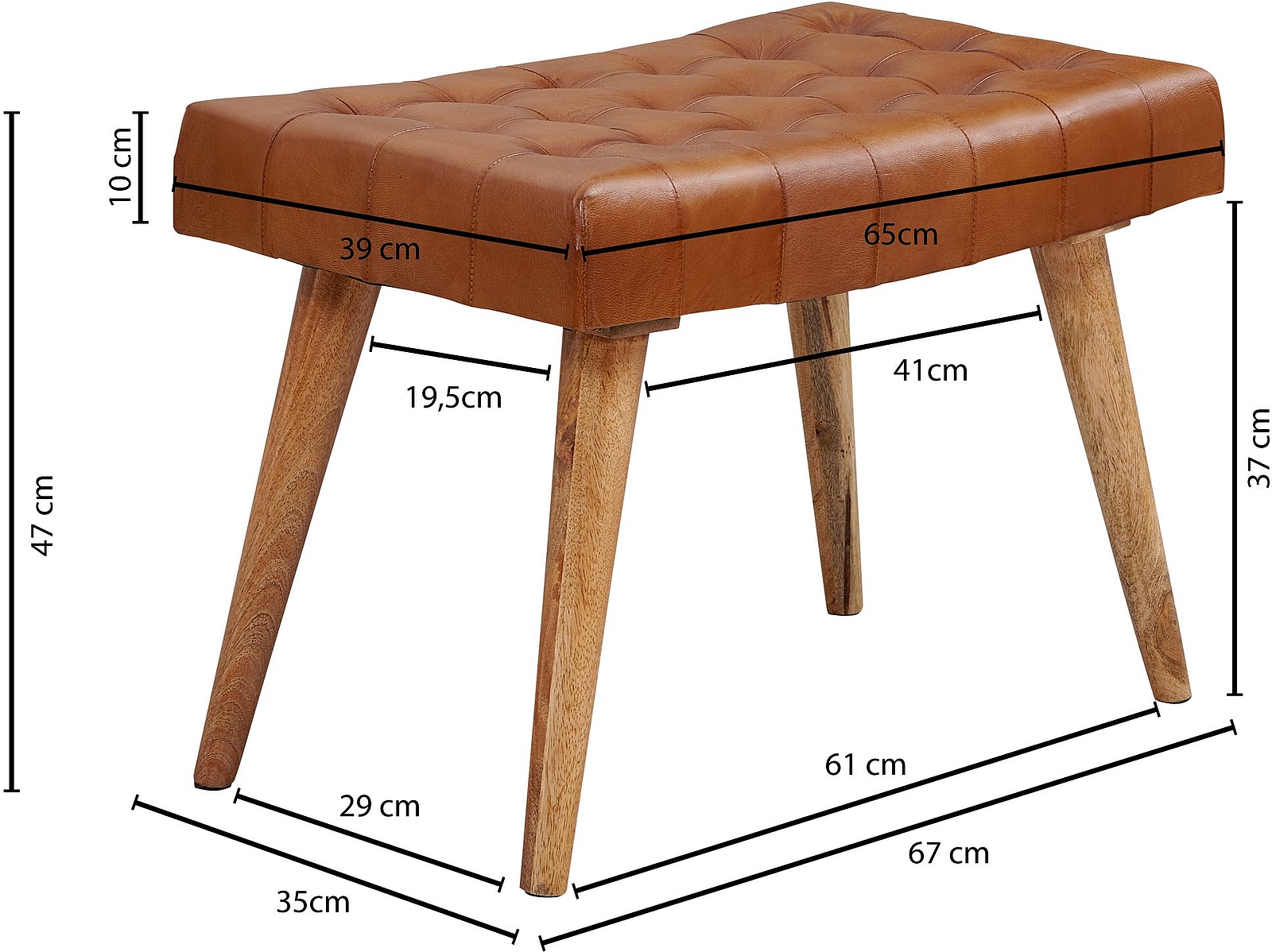 - MATÉRIAUX ✔ Revêtement de l’assise : cuir de chèvre // Pieds : bois naturel massif de manguier recouvert d’un vernis protecteur transparent.