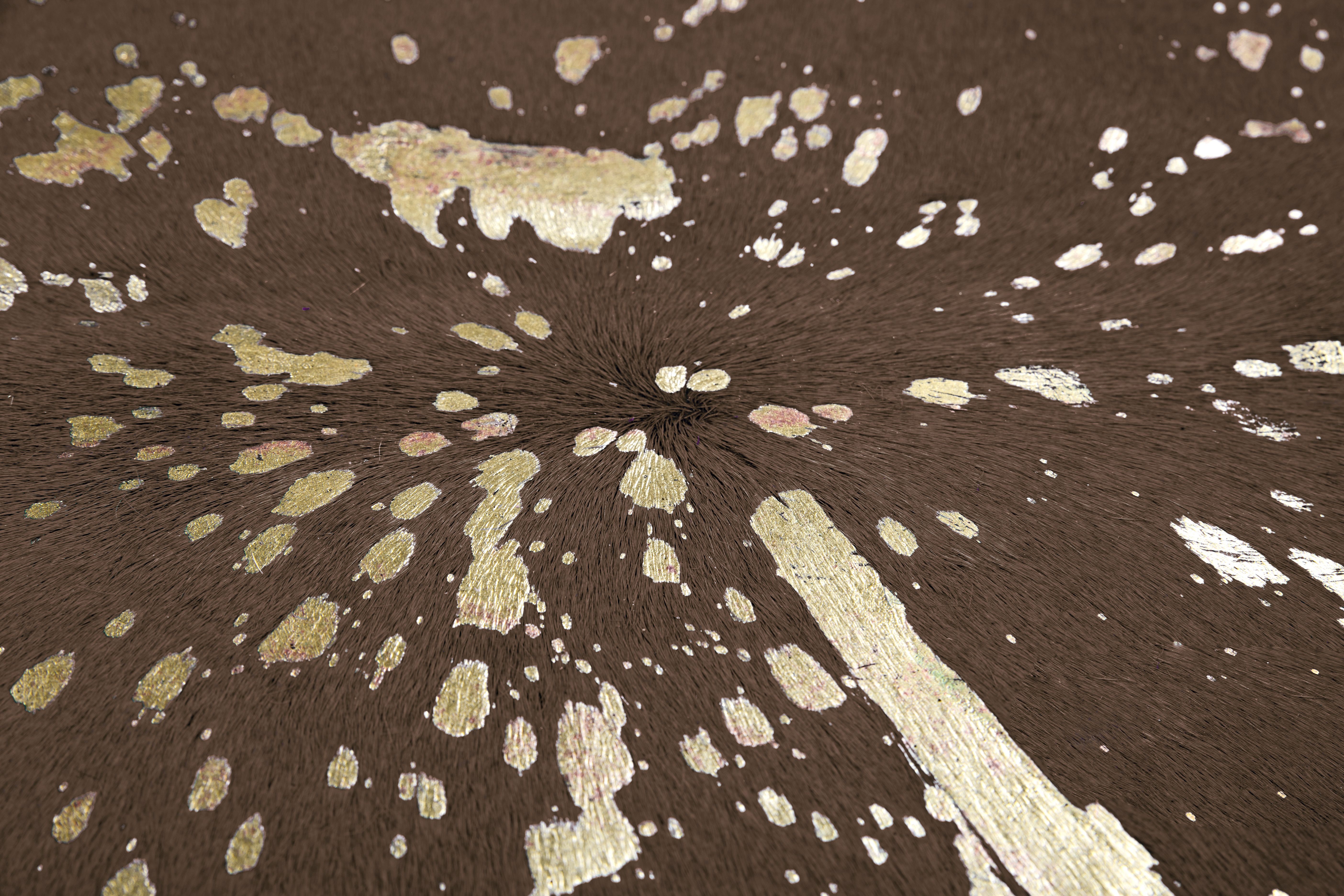 • 100 % cuir de vachette, pouvant s’utiliser comme revêtement de sol, assise confortable ou tenture murale, accents dorés, tapis à poils courts.