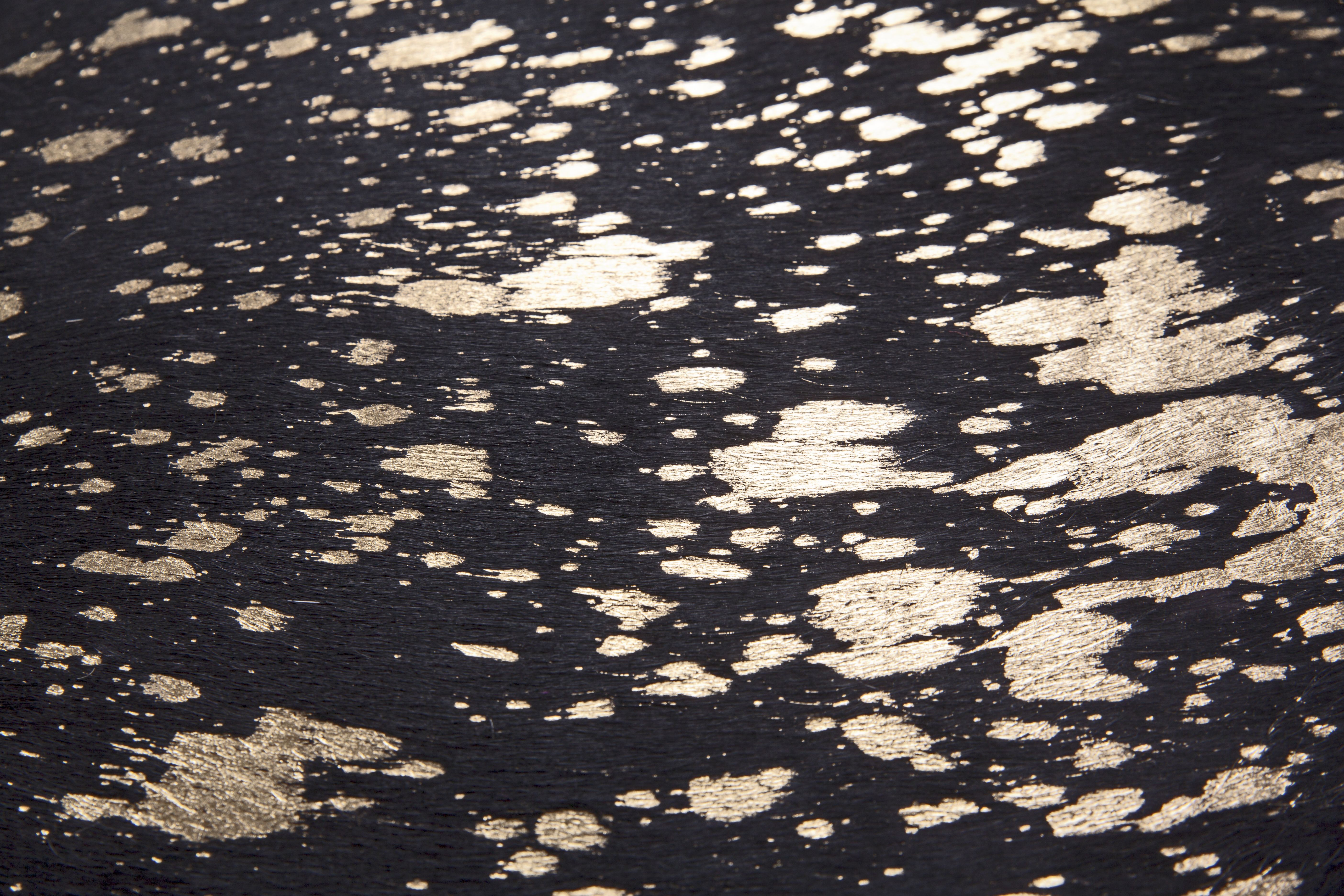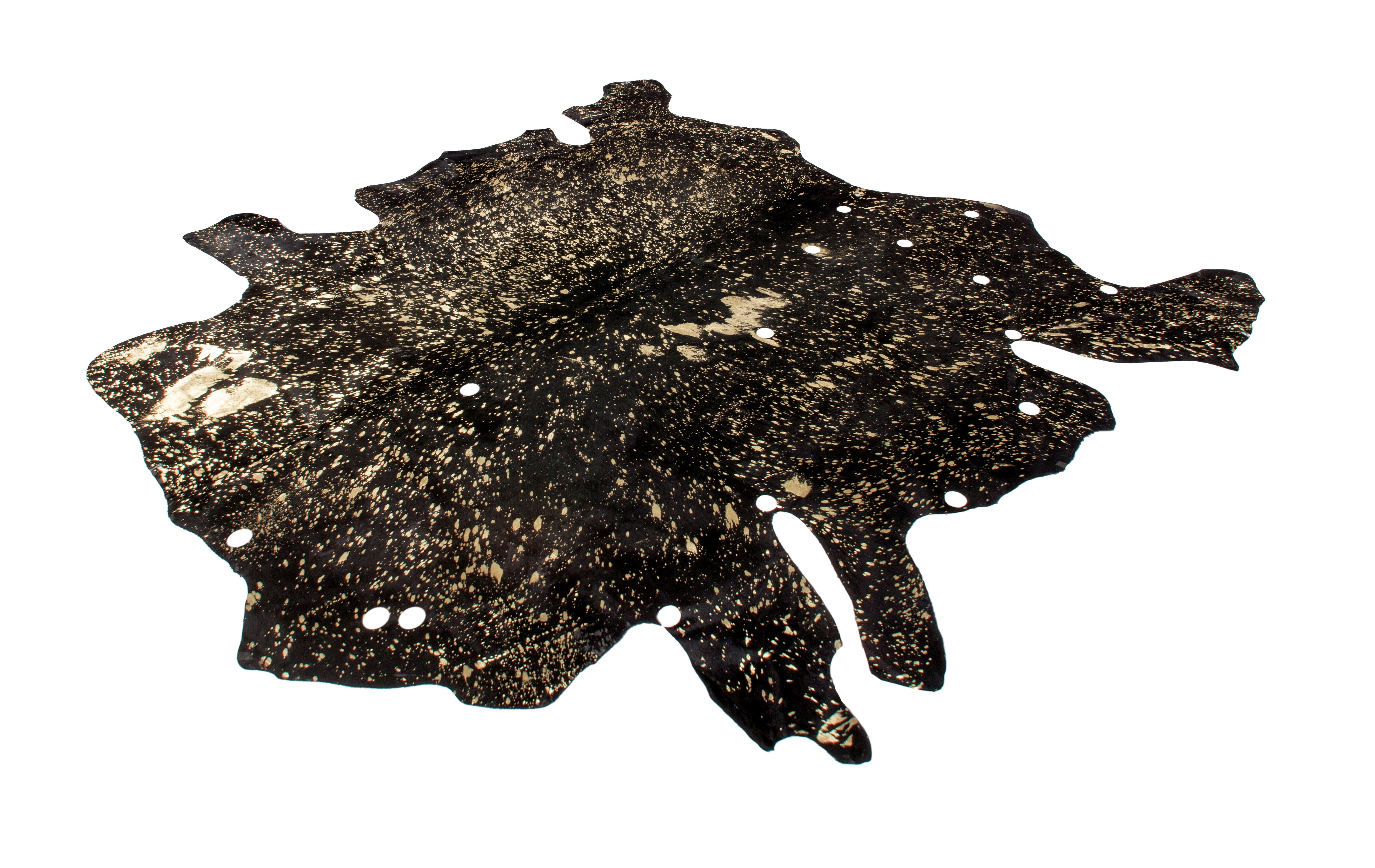 • 100 % cuir de vachette, pouvant s’utiliser comme revêtement de sol, assise confortable ou tenture murale, accents dorés, tapis à poils courts.