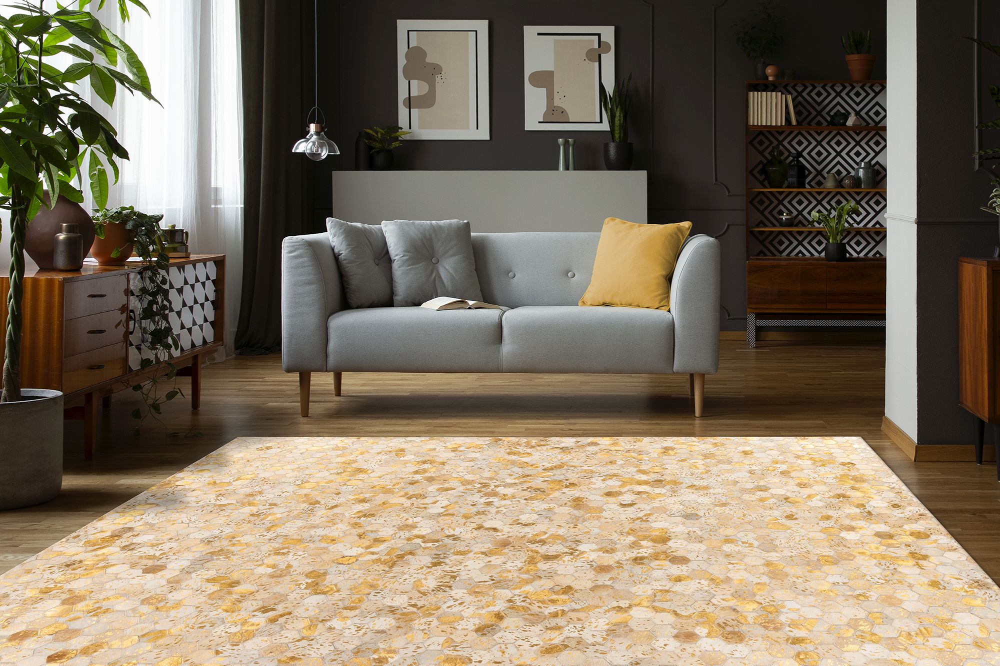 Ce tapis de qualité supérieure est disponible dans trois coloris et tailles ; il se caractérise par son design unique et ses matériaux naturels. Peu importe la pièce où se trouve ce tapis à poils courts en cuir de vachette : les effets métalliques apportent une touche élégante qui attire immédiatement le regard.