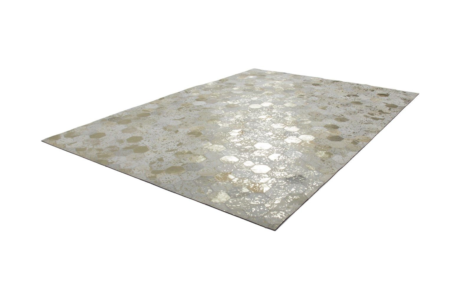 Ce superbe tapis en cuir avec détails incrustés dans un film métallisé apportera la touche finale à un intérieur luxueux. Cet élégant tapis de qualité 100 % cuir imprime une touche individuelle à la pièce tout en lui conférant un charme inimitable. Fabriqué à la main, chaque tapis en cuir est une pièce unique. L’utilisation de matériaux nobles et la finition de qualité créent un effet dynamique et font de chaque tapis un modèle unique : en effet, en raison des caractéristiques naturelles, la forme, la couleur et le motif peuvent varier jusqu’à 30 % par rapport au modèle original. En cas d’utilisation intensive et après un certain temps, il est possible que ce tapis perde des poils. De même, le film métallisé peut se détacher dans certaines circonstances. Ceci est dû aux caractéristiques de ce produit naturel : il ne s’agit pas d’un défaut de fabrication.