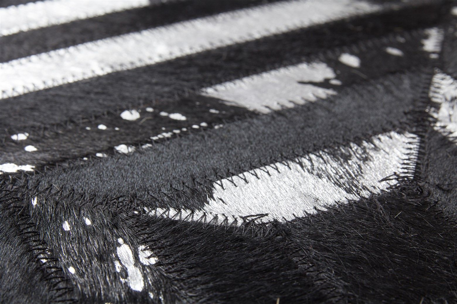 Ce superbe tapis en cuir avec détails incrustés dans un film métallisé apportera la touche finale à un intérieur luxueux. Cet élégant tapis de qualité 100 % cuir imprime une touche individuelle à la pièce tout en lui conférant un charme inimitable. Fabriqué à la main, chaque tapis en cuir est une pièce unique. L’utilisation de matériaux nobles et la finition de qualité créent un effet dynamique et font de chaque tapis un modèle unique : en effet, en raison des caractéristiques naturelles, la forme, la couleur et le motif peuvent varier jusqu’à 30 % par rapport au modèle original. En cas d’utilisation intensive et après un certain temps, il est possible que ce tapis perde des poils. De même, le film métallisé peut se détacher dans certaines circonstances. Ceci est dû aux caractéristiques de ce produit naturel : il ne s’agit pas d’un défaut de fabrication.